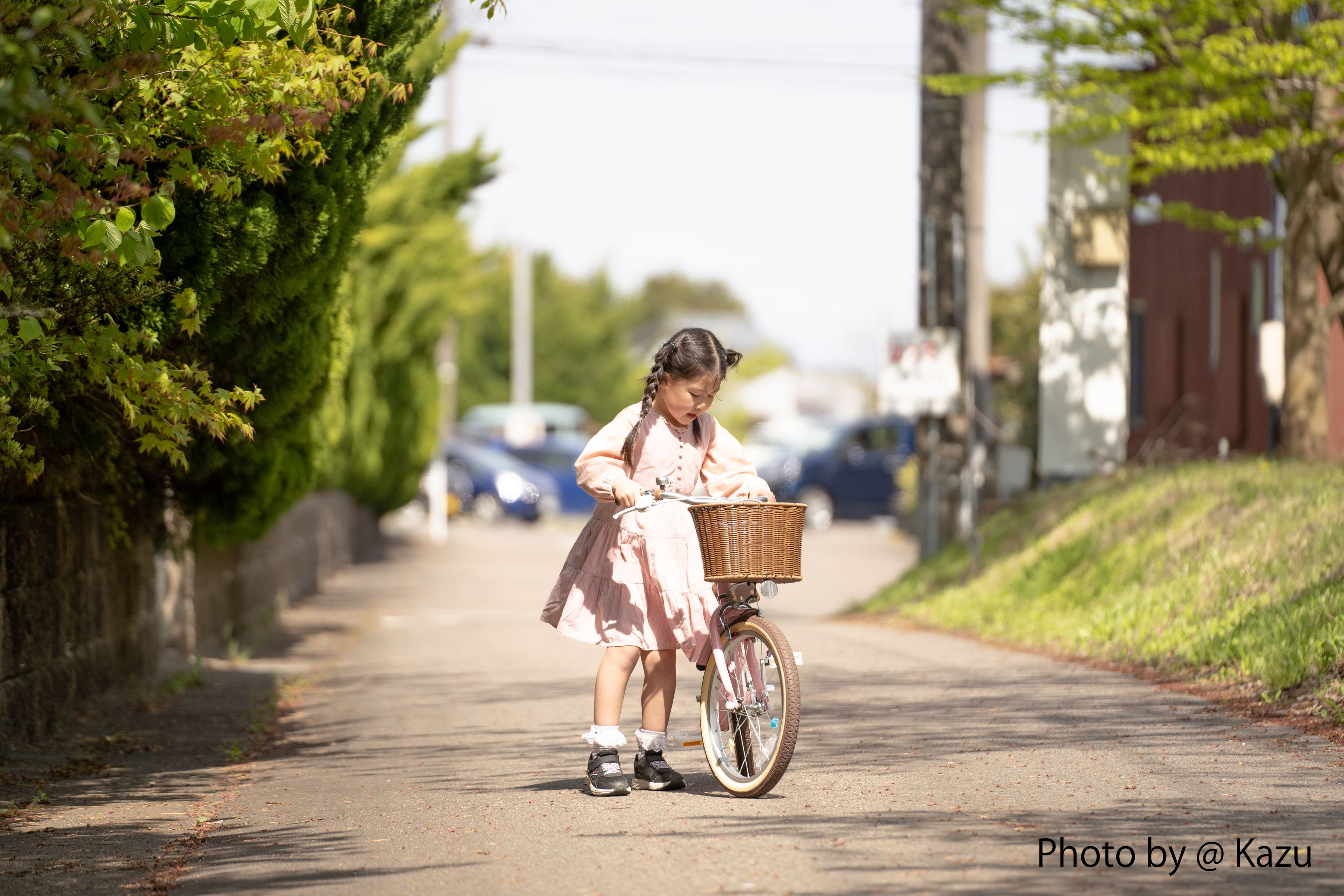 先週だったかな? 小さい子が補助輪なしで自転車乗っていて、娘が補助輪付きで自転車に乗っていた所 「小さい子が補助輪なしで乗ってるのに私は、、」と て事で練習!車通りの少ないところで頑張りました! 何回か練習すれば出来るようになると思います! 頑張れ娘ちゃんよ!!