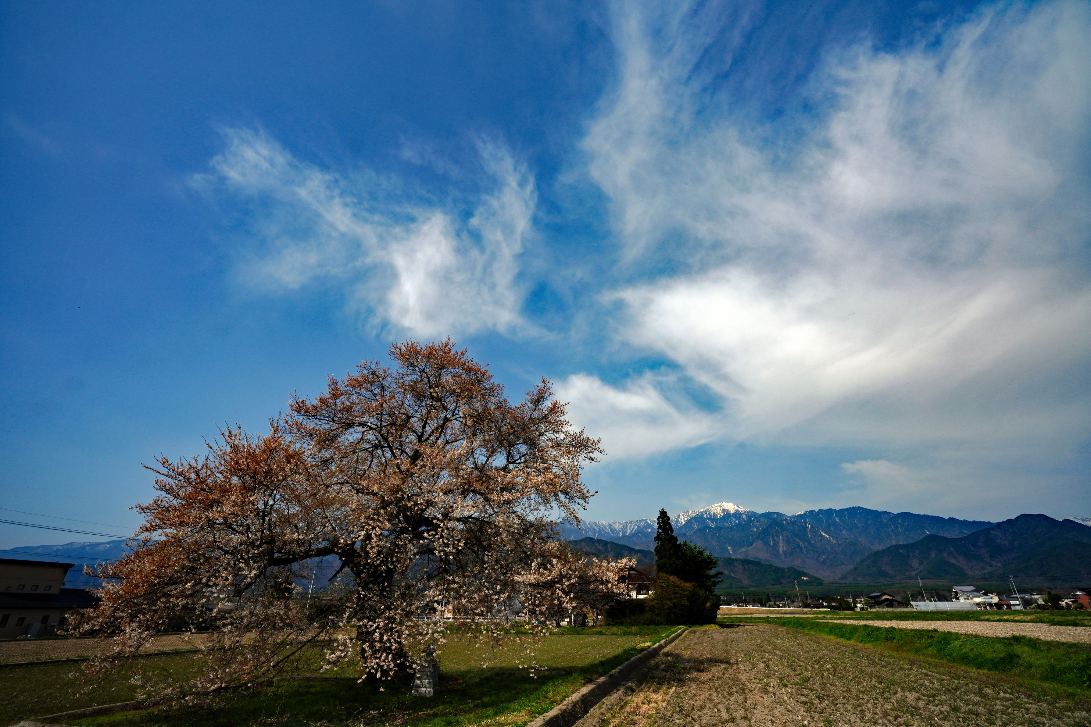 北アルプスを背に一本桜