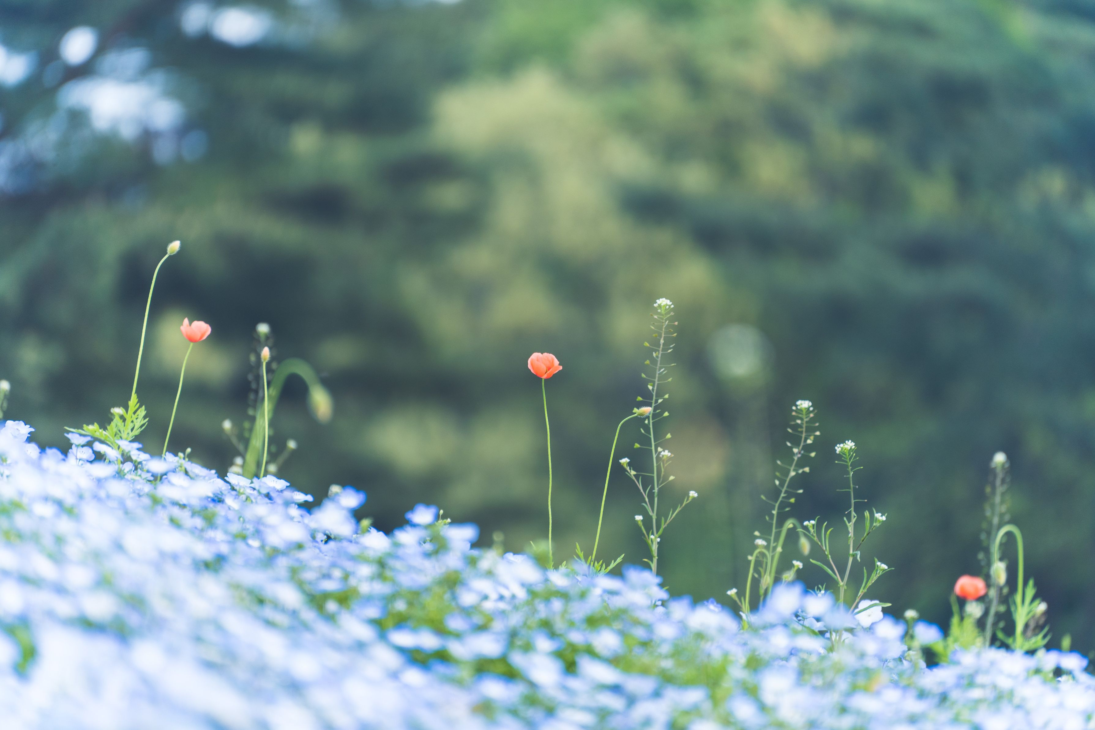 ネモフィラ満開にちょこちょこいろいろ咲いてると、意外とそっちに目が行く