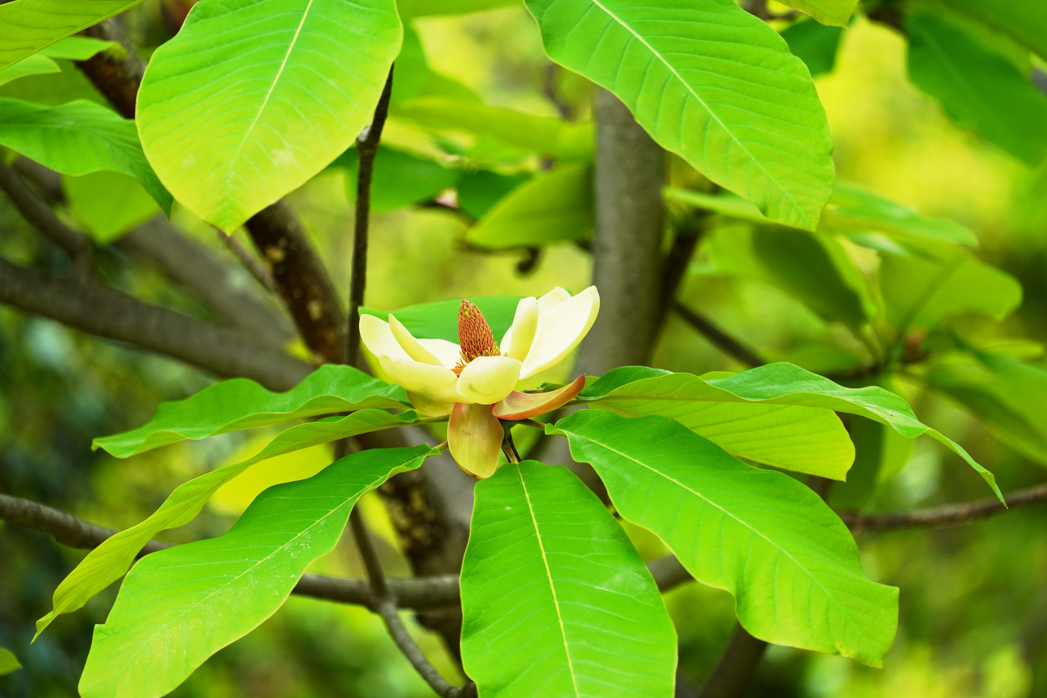 モクレン科モクレン属の高木で、昔から日本人の生活に根ざしてきた木です。日本に自生する木の中では最大級の葉と花を有する木で、葉には抗菌作用があり食品を包んだり、材は均質で加工しやすくまな板や下駄の材料として重宝されてきました。
