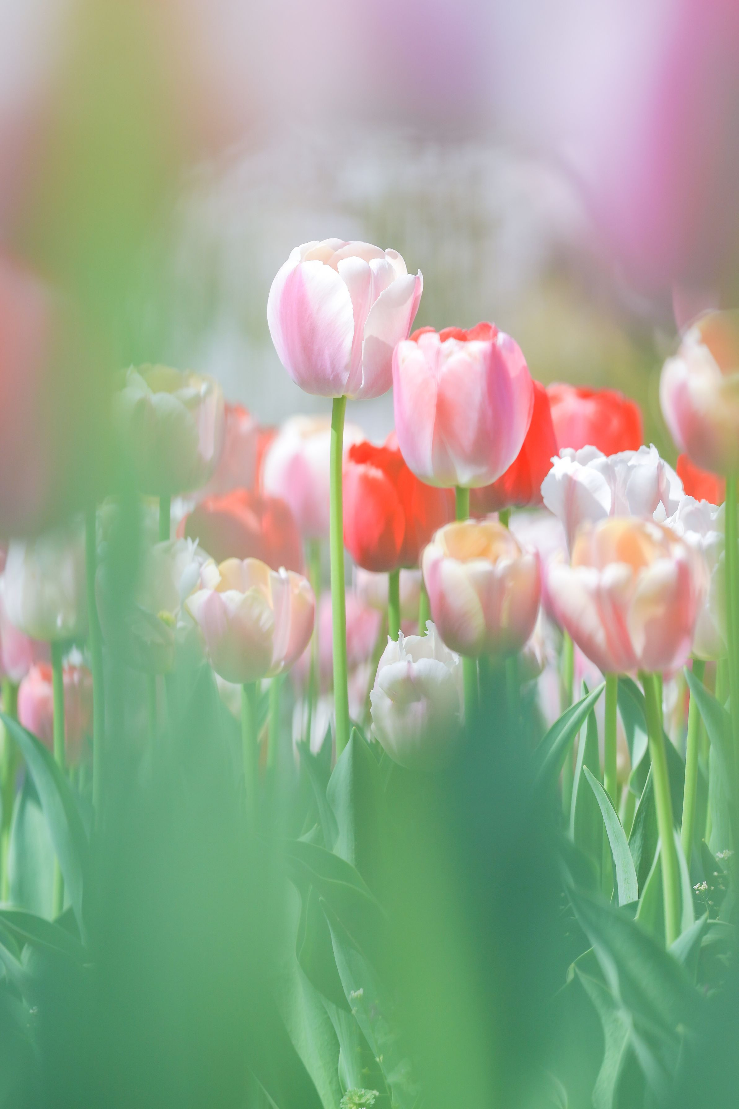 思いがけず絵のようなタッチになりました。チューリップ畑にいる家族を絵に描いている画家の気分です。