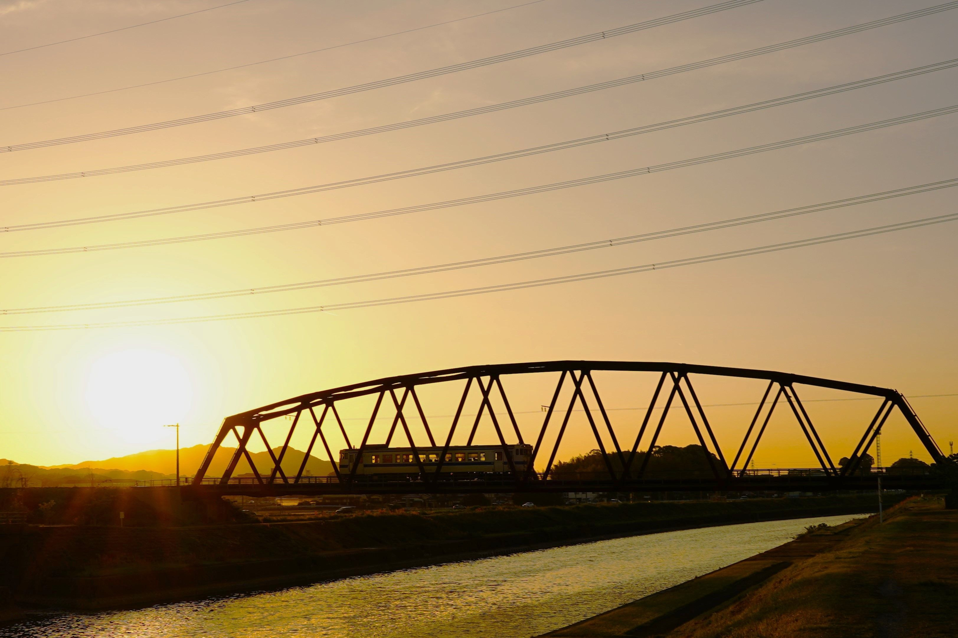 わが町の古い鉄橋とローカル線です。