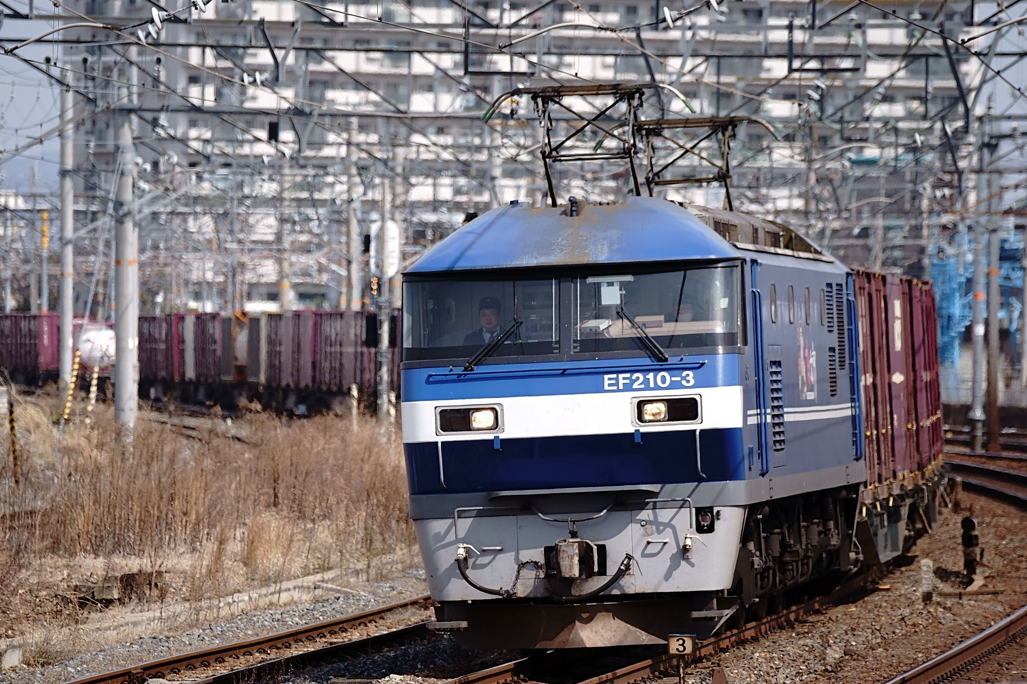 吹田区のEF210-324号機が1073レを牽引してサントリーカーブを通過して行った 東海道本線 山崎~島本