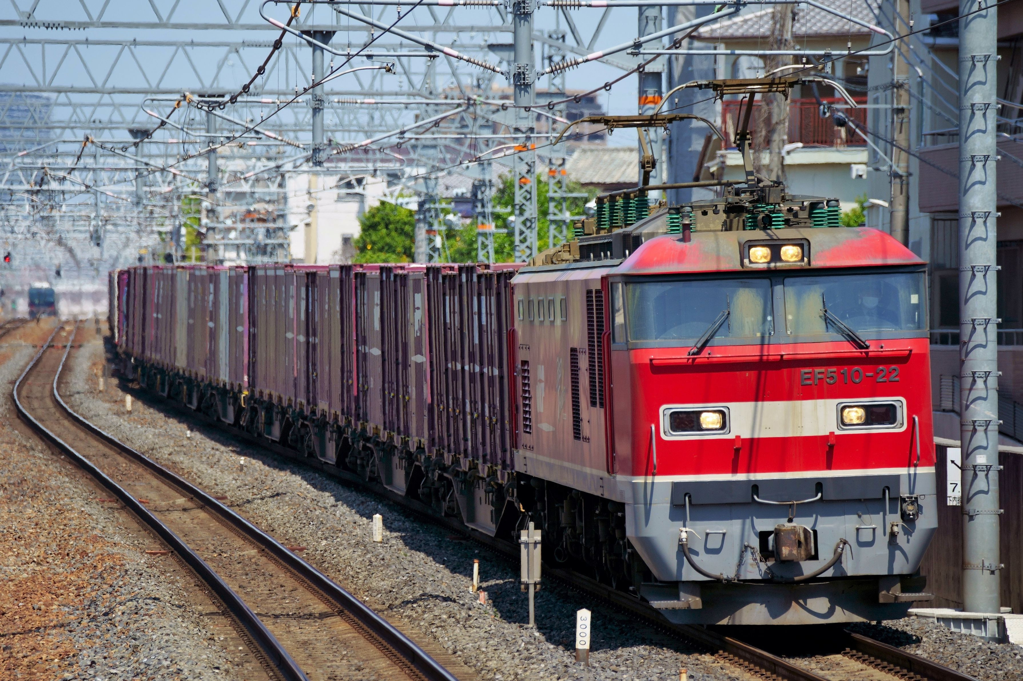 日本海従幹線を南下して東海道本線に入線してきた偶数番号の3092レ牽引のレッドサンダーEF510-22号機 東海道本線 摂津富田~JR総持寺
