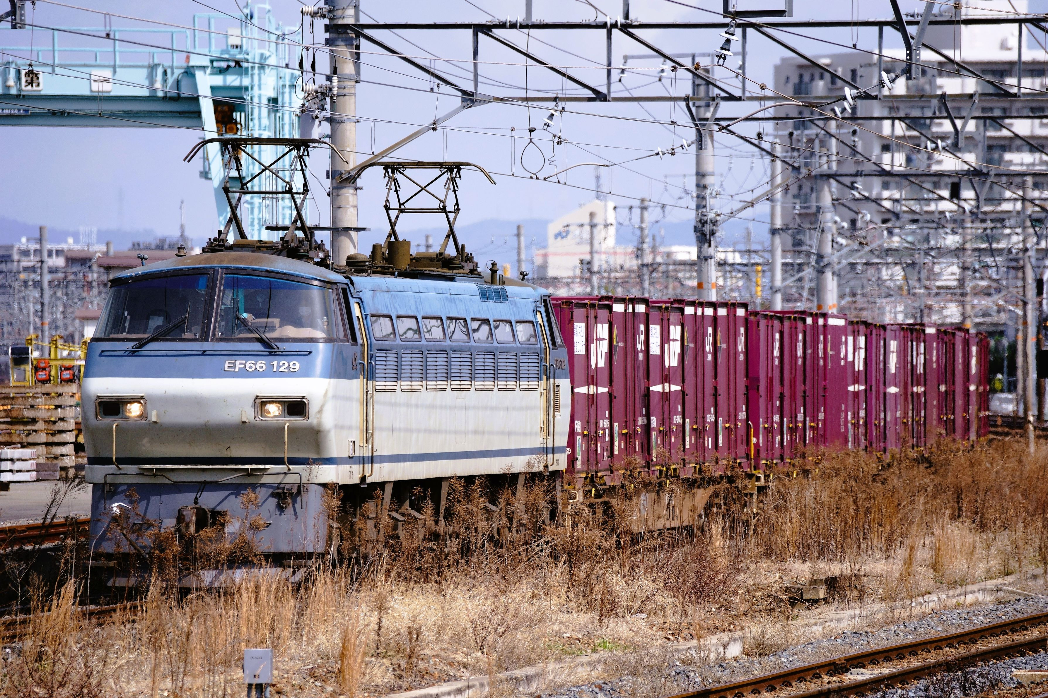 地元関西での運用が少なくなっているEF66サメの129号機が85レを牽引して大阪貨物タから百済貨物タまでの短い運用に入って同日〇ヨで関東に向かう 東海道本線吹田貨物線 吹田貨物タ東~吹田貨物タ西