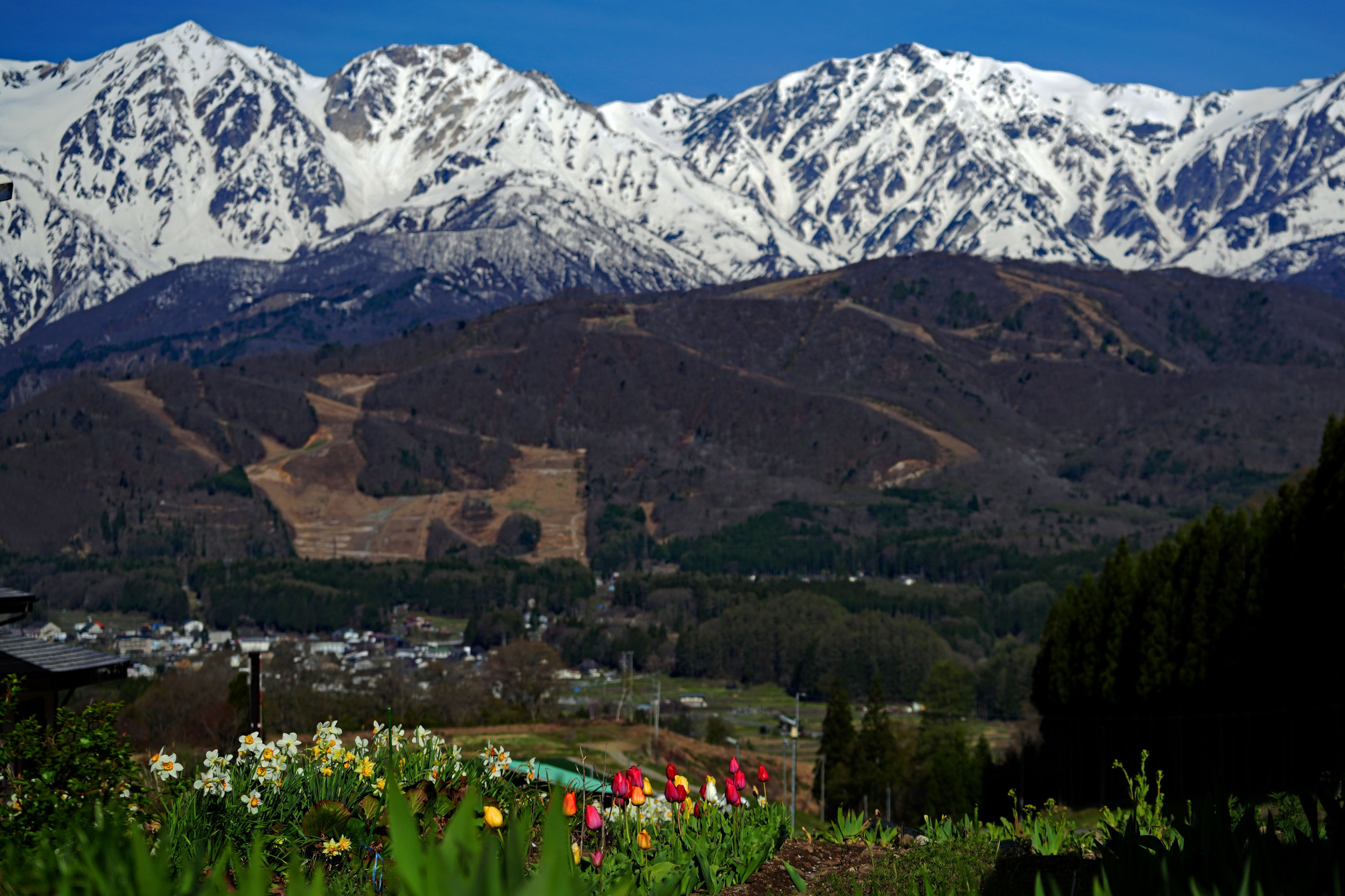 チューリップと水仙と白馬三山