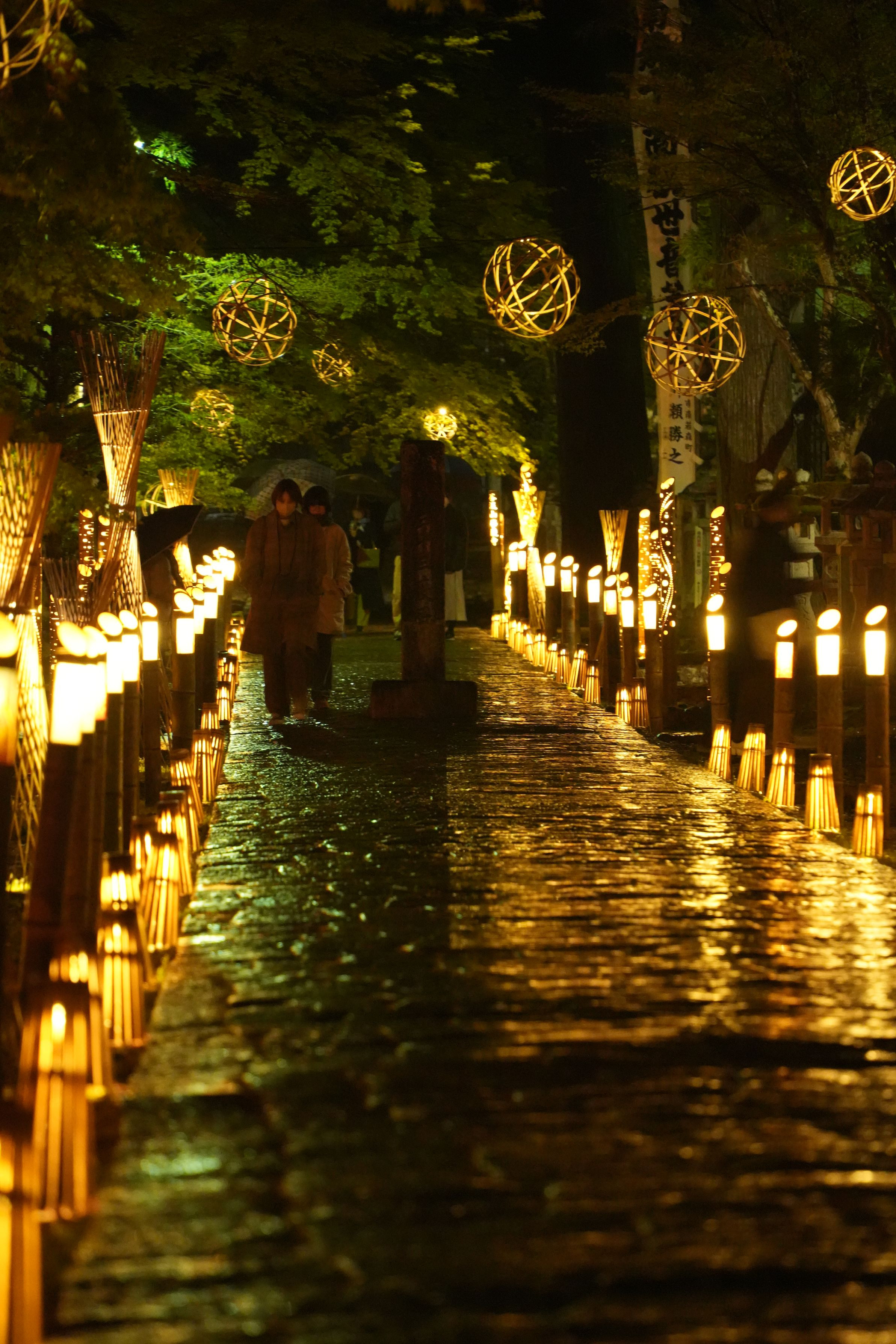 岐阜県谷汲山華厳寺にてぬくもりイルミネーションが開催されました 2023.3.17~4.9まで 幻想的な竹灯籠のあかりが雨でいっそうしっとりとした温かみがある灯りへと変貌し 多くの人を魅了していました。