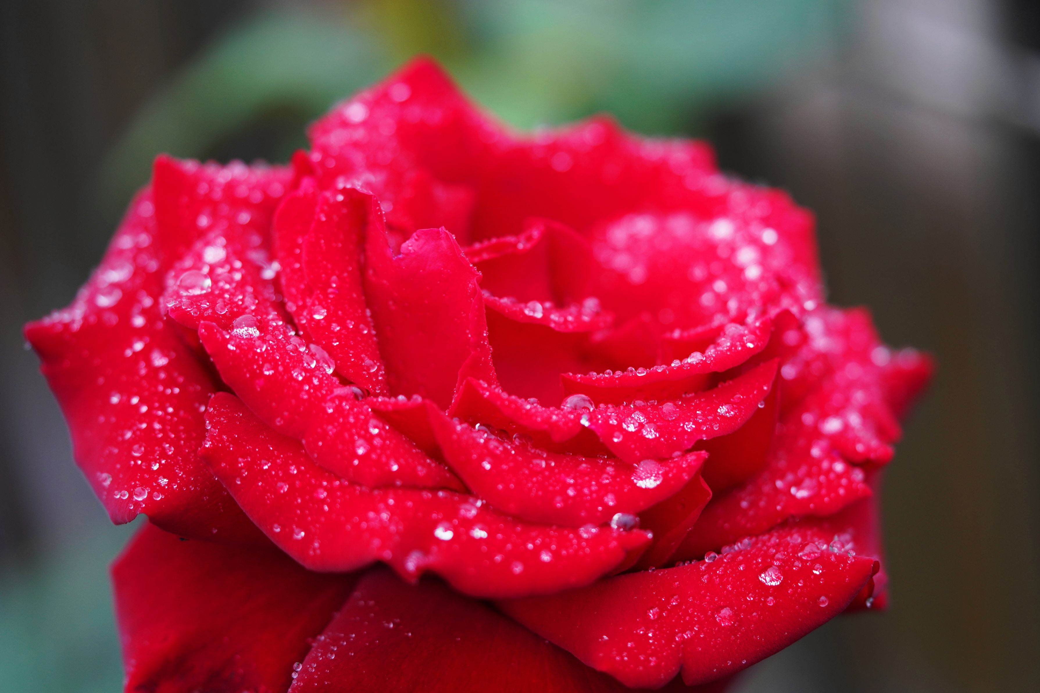美しく咲いていたバラ(イングリッドバーグマン)ですが 、雨が降り始めました。
