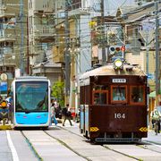 モ161形モ164号車は導入当時のこげ茶色に復元塗装されたショックなチンデン 阪堺線 住吉~東粉浜