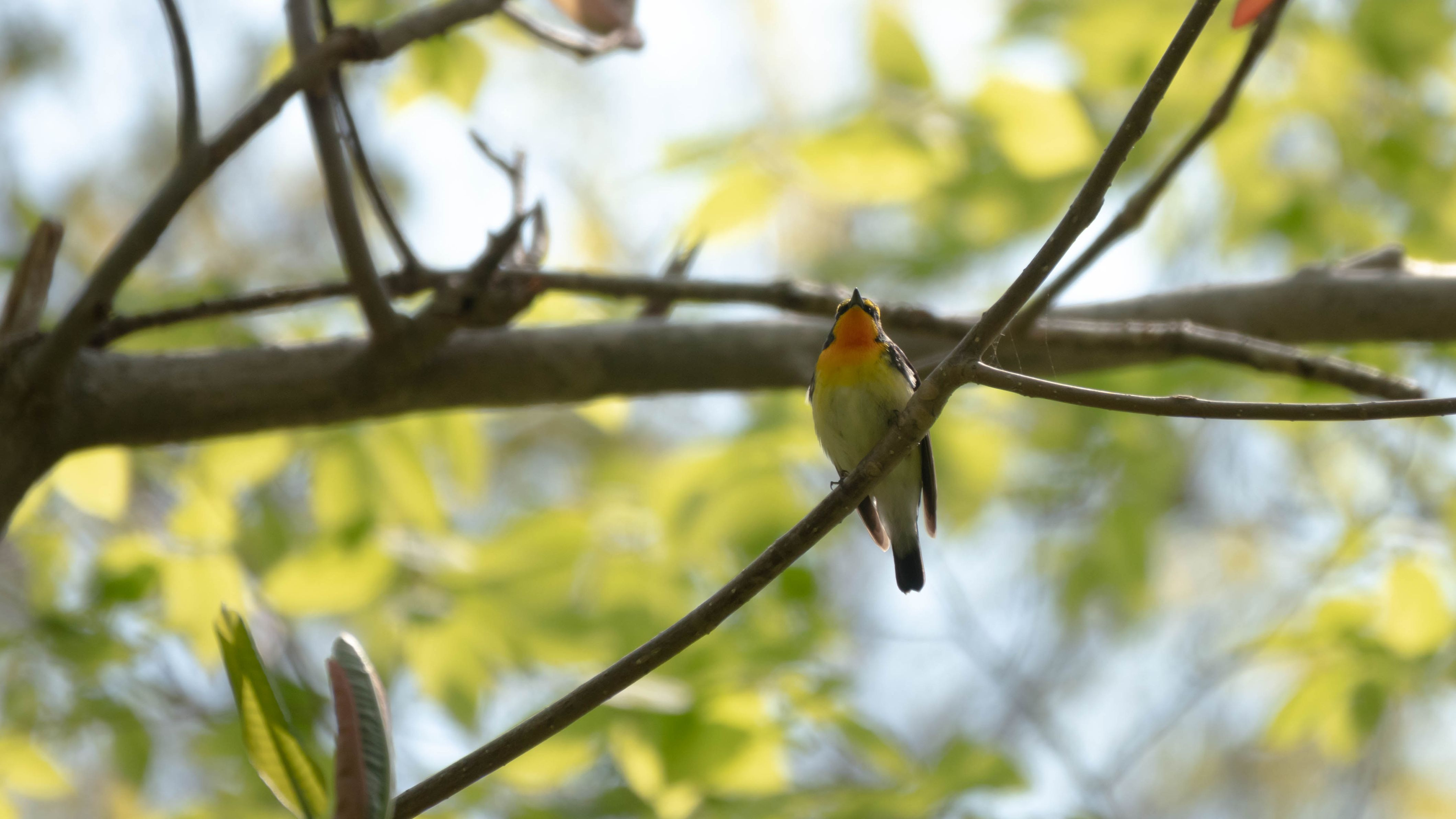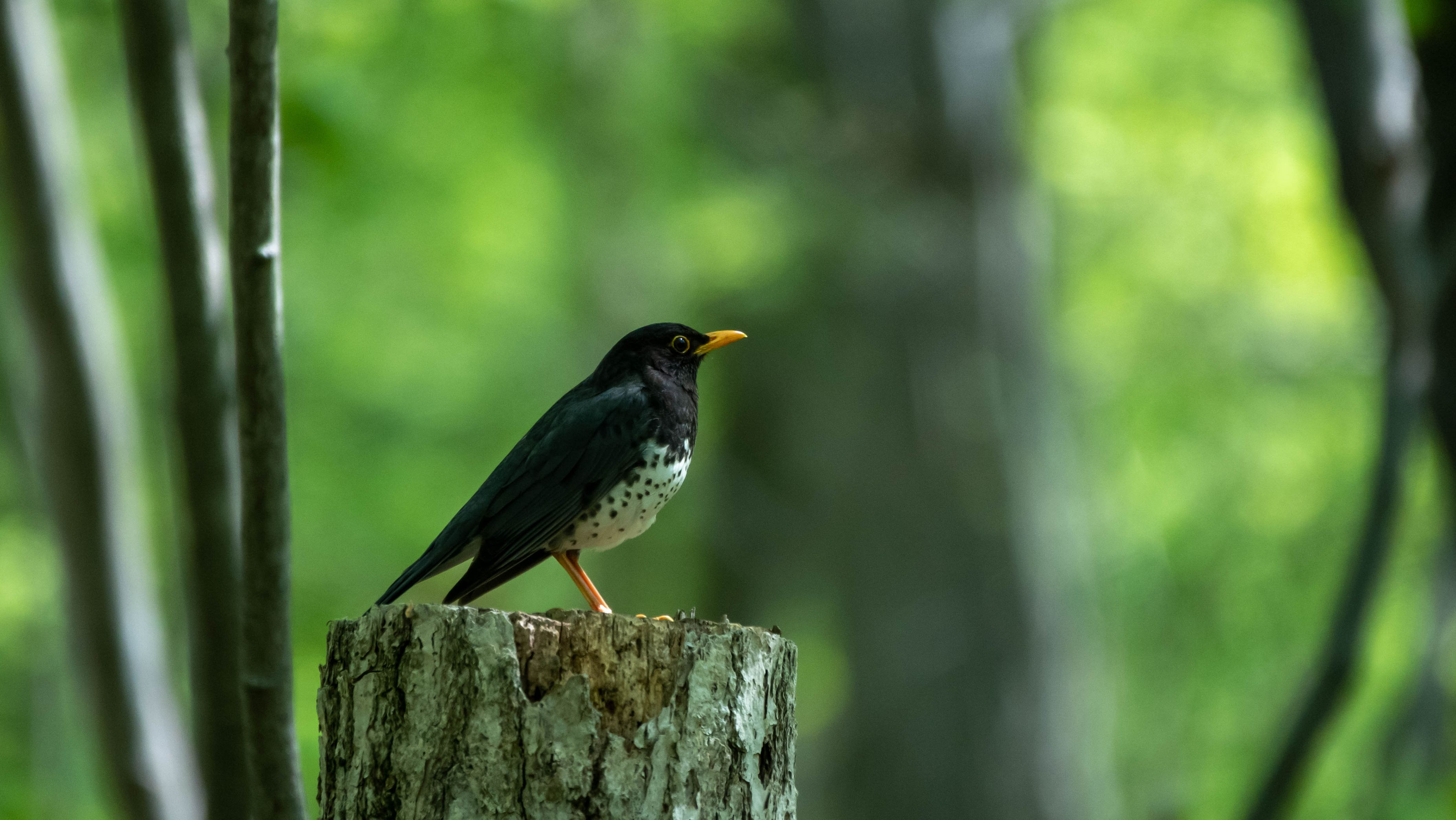 クロツグミさんがキビタキさんの囀りを聞いて固まっていました。