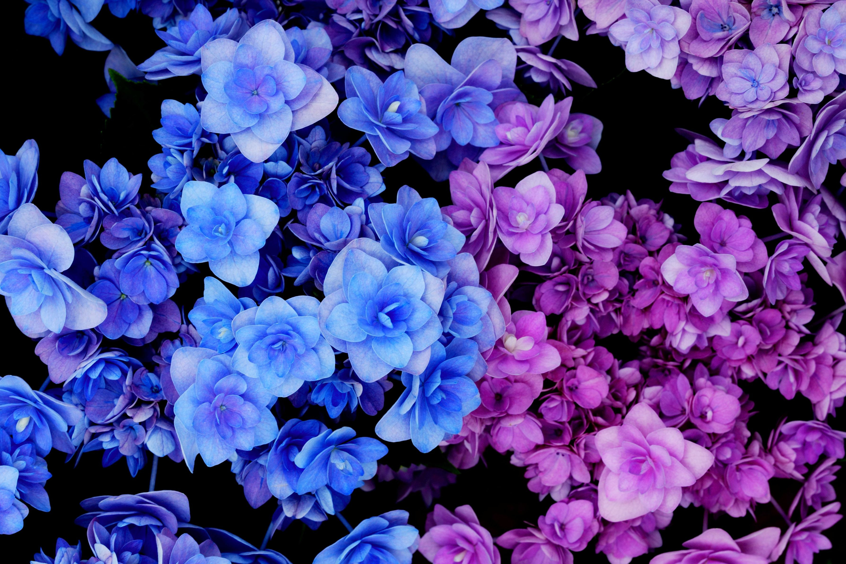 青とピンクの紫陽花の競演です。