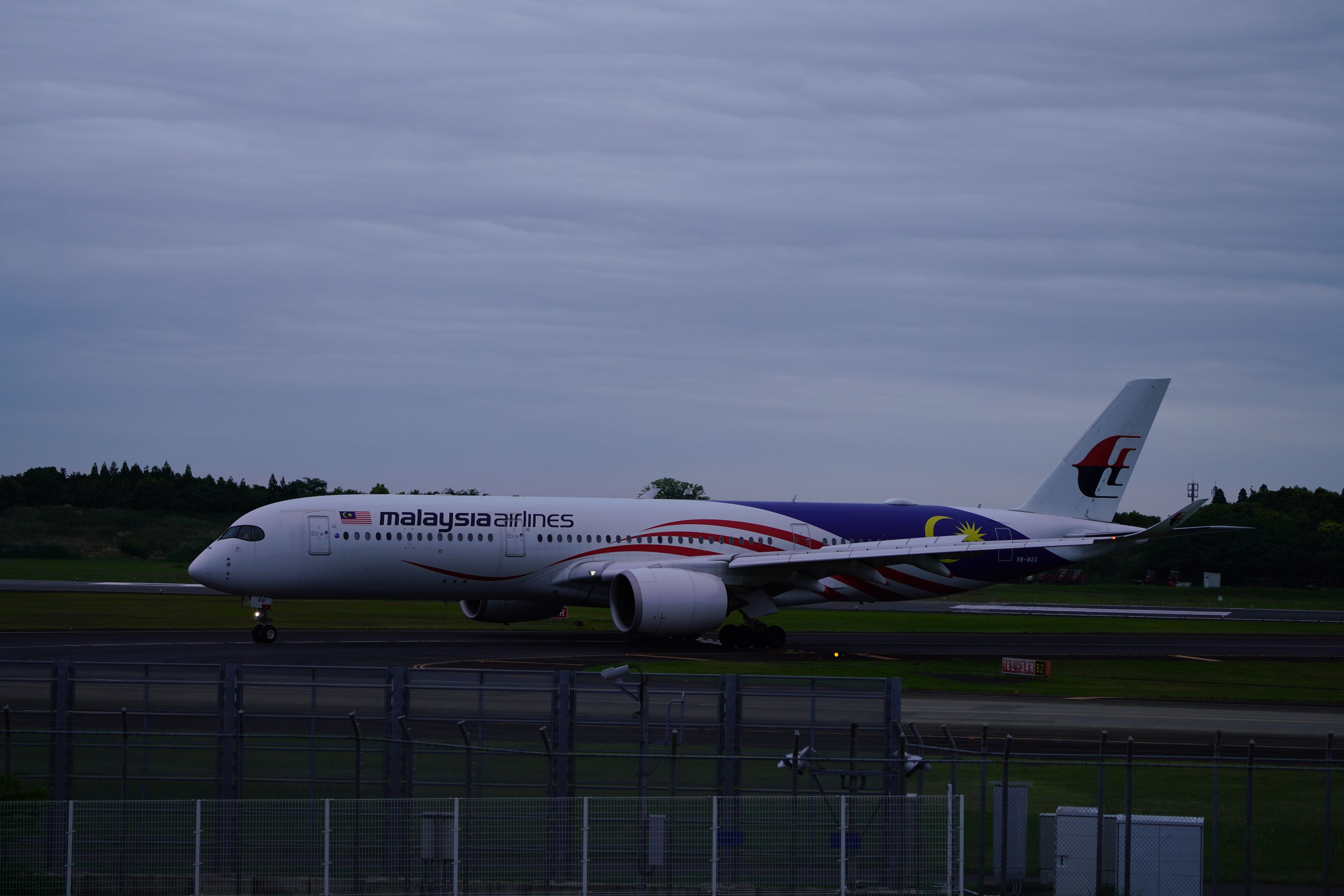 5月1日 成田十余三東雲の丘より malaysia air lines A350 (着陸し終えた所です)