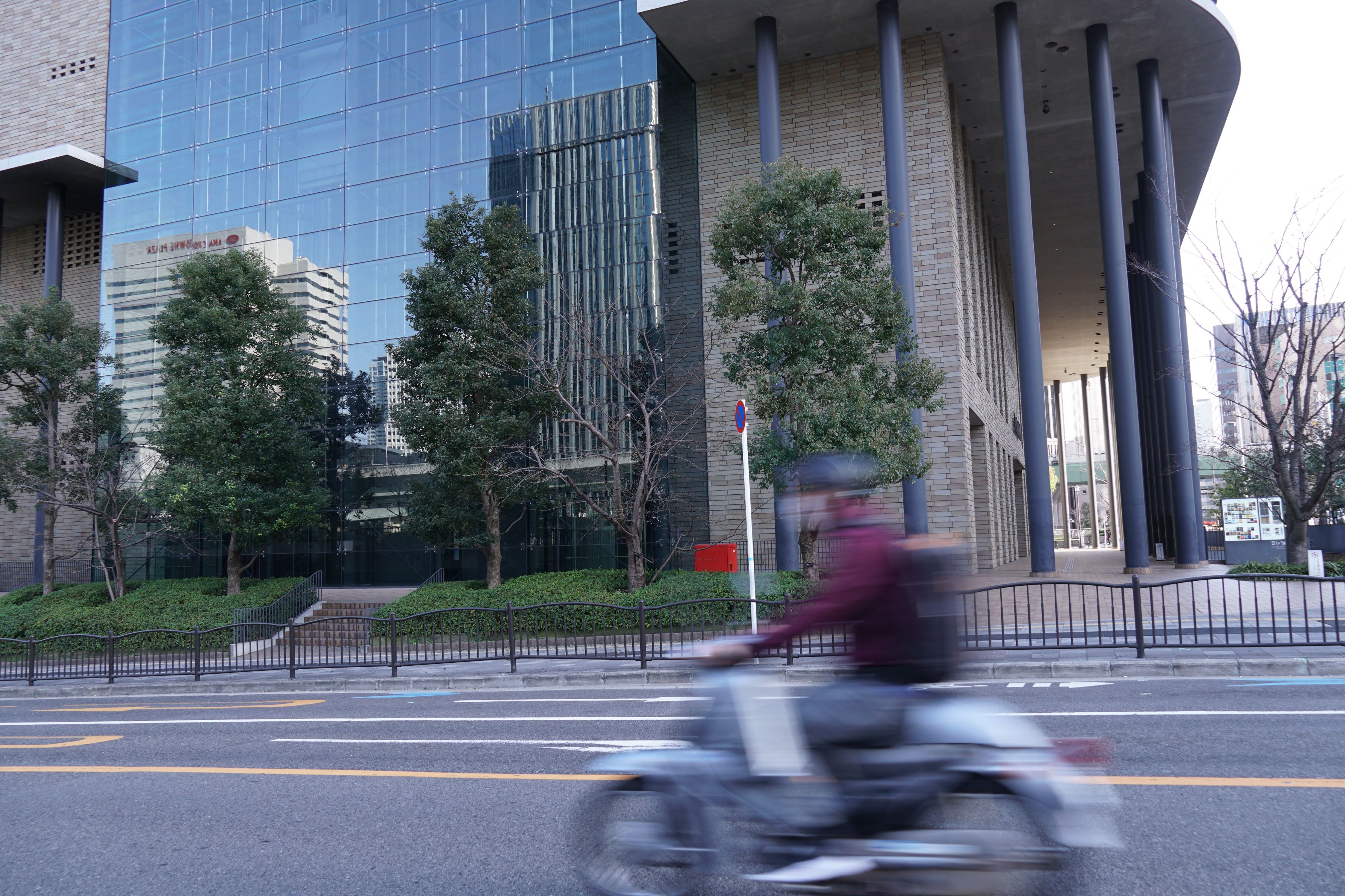3/11阪野 祐美子 先生の「街スナップ」講座での1枚です。 遅くなってしまいましたが、淀屋橋、北浜界隈のフォトです。なんとなく見過ごしてきた街の風景に、足を止めて見ることができました。 良く晴れた青空がビルにきれいに映り込んで、ちょうど、その時バイクが走りこんできて、制と動の瞬間が撮れました