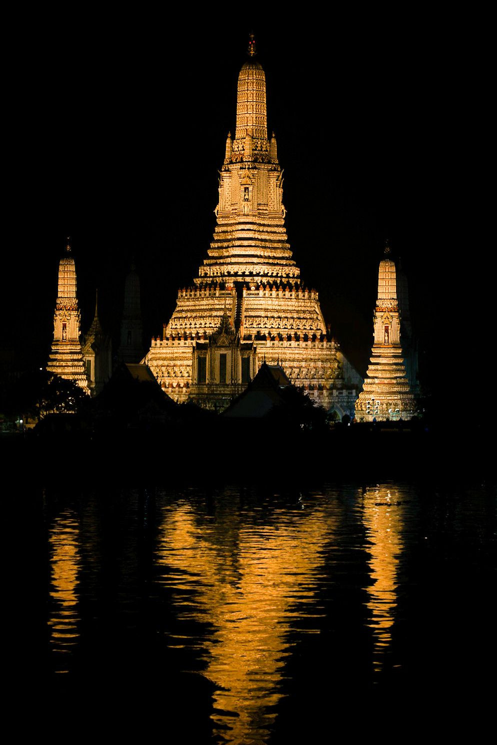 初めての海外で東南アジア旅行に1人で行き、その時にタイの首都であるバンコクの象徴ワットアルンをパシャリ📸昼間とは違った、幻想的な表情を見せる一枚をご覧ください。ワットアルンを反射させる川は、夜でもボードが走っているため、完全に波紋が収まる瞬間は、捉えることはできませんでしたが、これはこれで風情があり好きな一枚です。