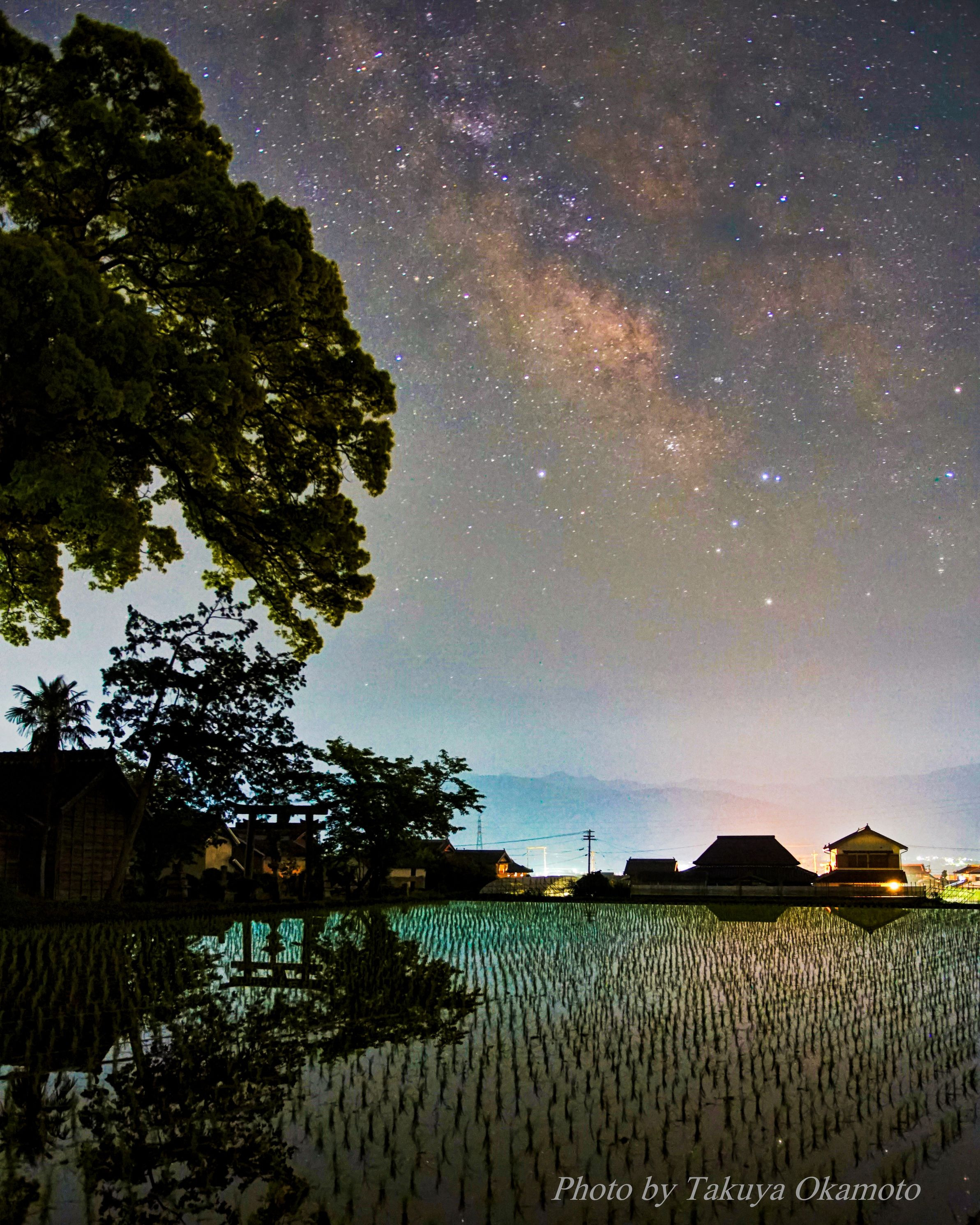 水田に映える星空