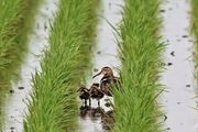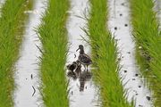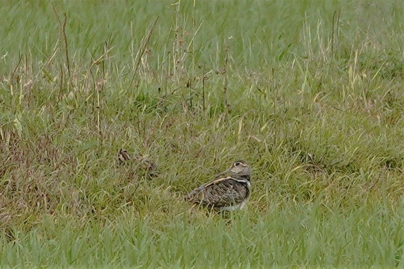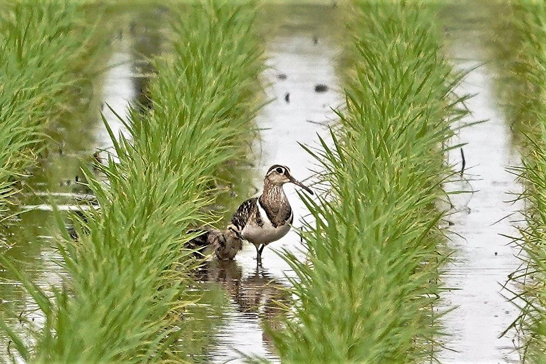 前回撮ったタマシギの様子を見に行きました。 前回から少し離れた所でオスが2羽の雛を連れているのを見ることが出来ました。