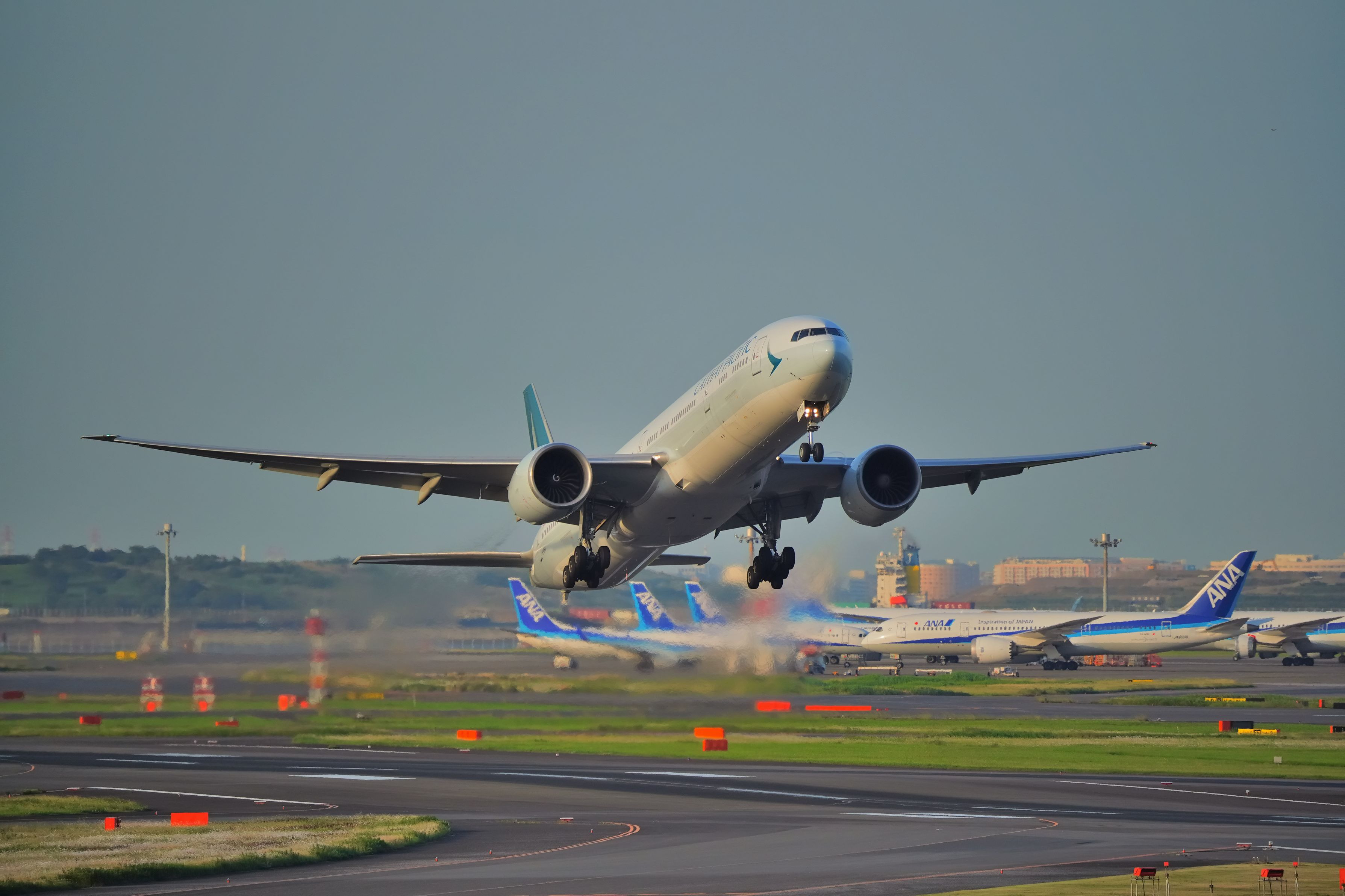 羽田空港 天空橋駅に隣接している羽田イノベーションシティから勢い良く離陸していく国際線を撮りました。 風向きと運用時間が限られているので、記憶に残せて良かったです。
