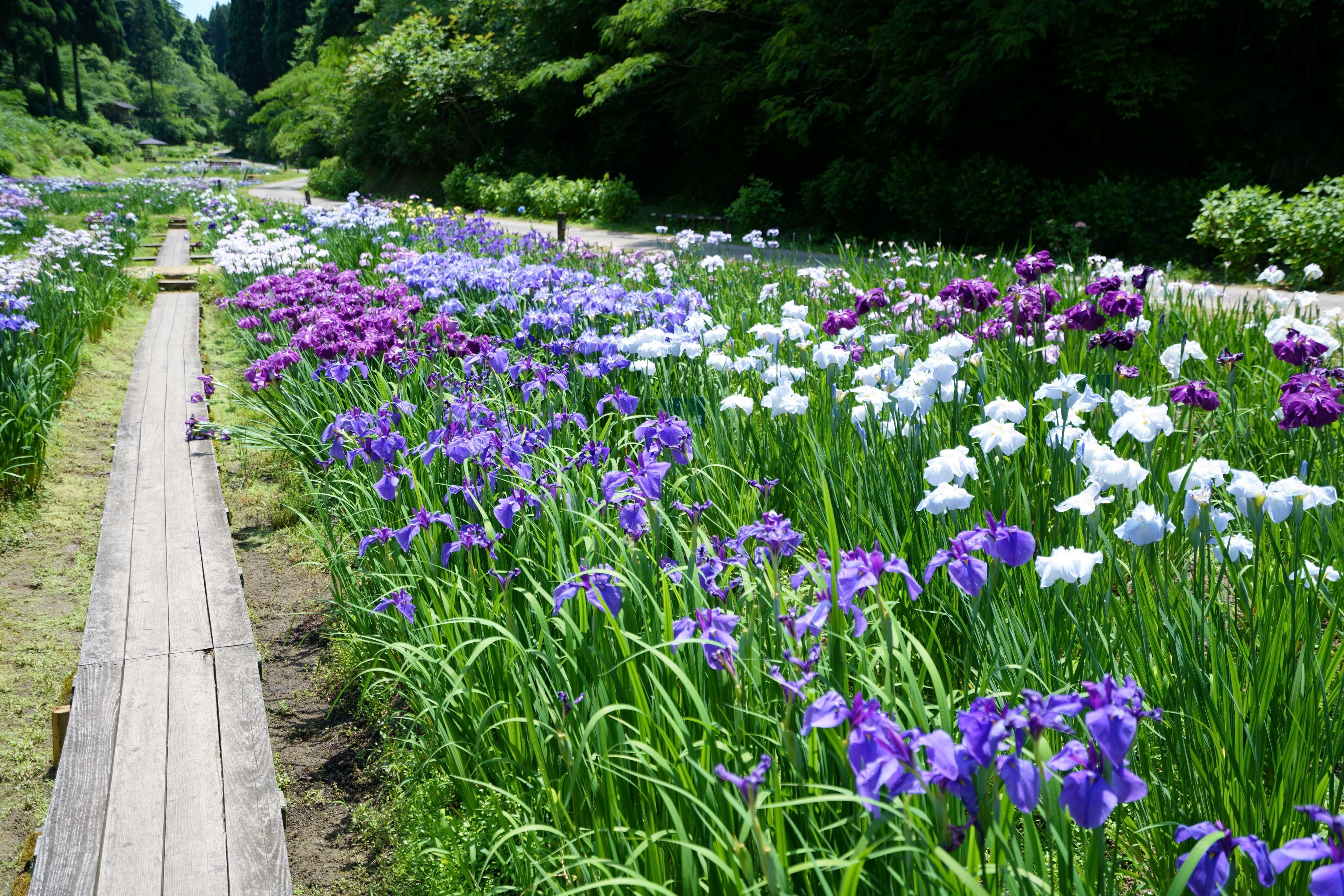 富山県の"頼成(らんじょう)の森"へ初めて行って来ました。 奥の方まで沢山の花菖蒲が綺麗に咲いてとっても素敵でした。 奥までの長さにとてもびっくりしました。 木陰にいると涼しい風がとっても気持ちよかったです。 梅雨の時期で蒸し暑い日々が続きますが、ぐるっと回ってリフレッシュできました。 しかし、天気が良くて焼けましたけど(笑)
