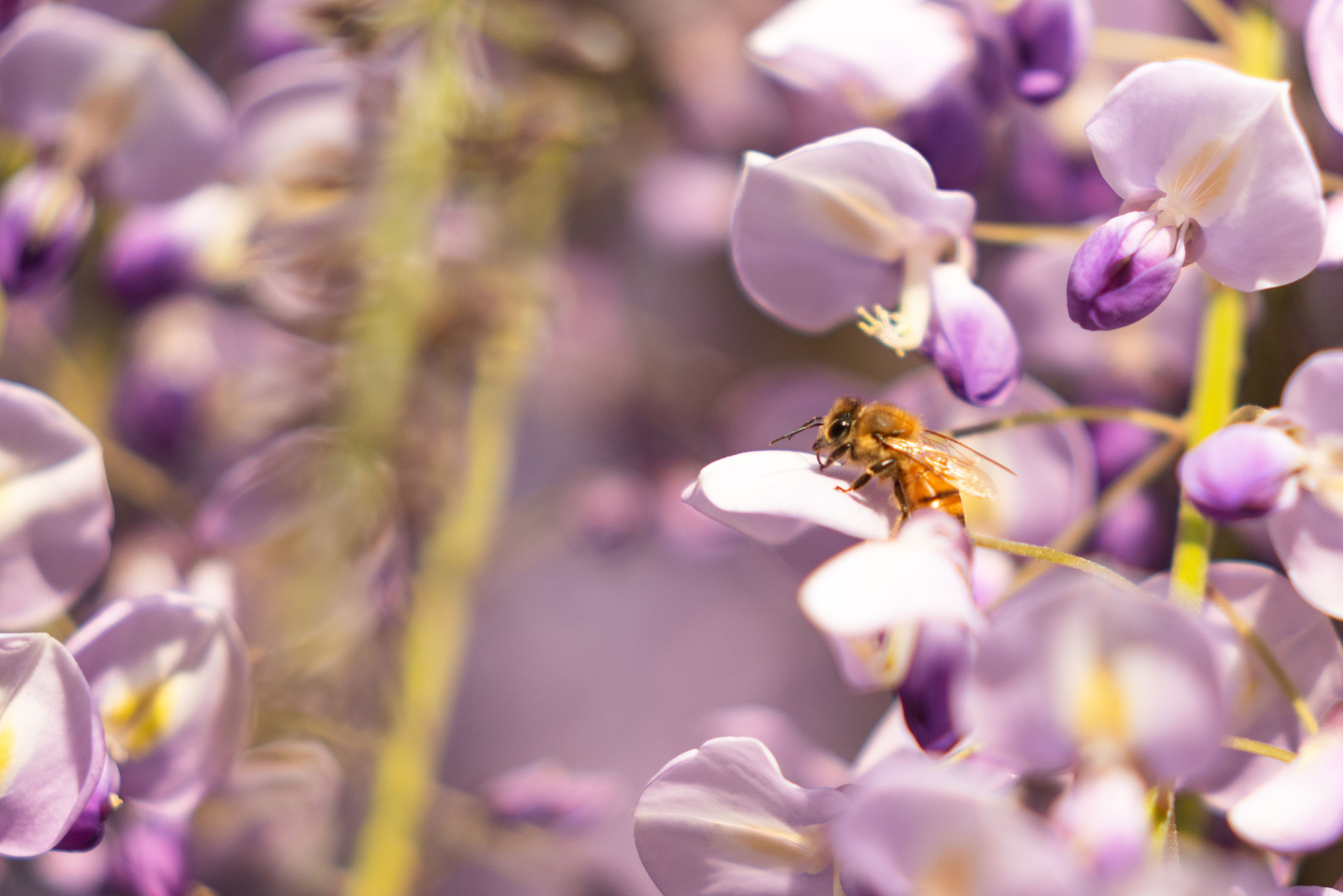 熊本県、山田日吉神社の藤です。ミツバチと一緒に