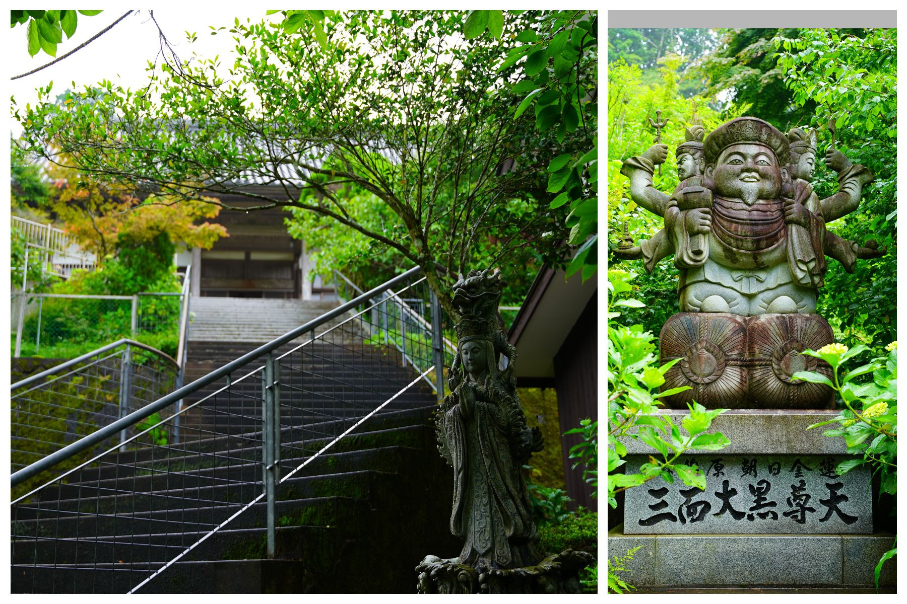 6月10日 千葉県 大多喜町 筒森1749 何時かいって見たいと思っていた麻綿原高原 麻綿原高原は関東随一の紫陽花の名所として知らているようです。 *左:水掛水神妙神(みずかけすいじんみょうじん) *右:三面大黒尊天 左毘沙門天が右に弁財天が彫られているとの事です。