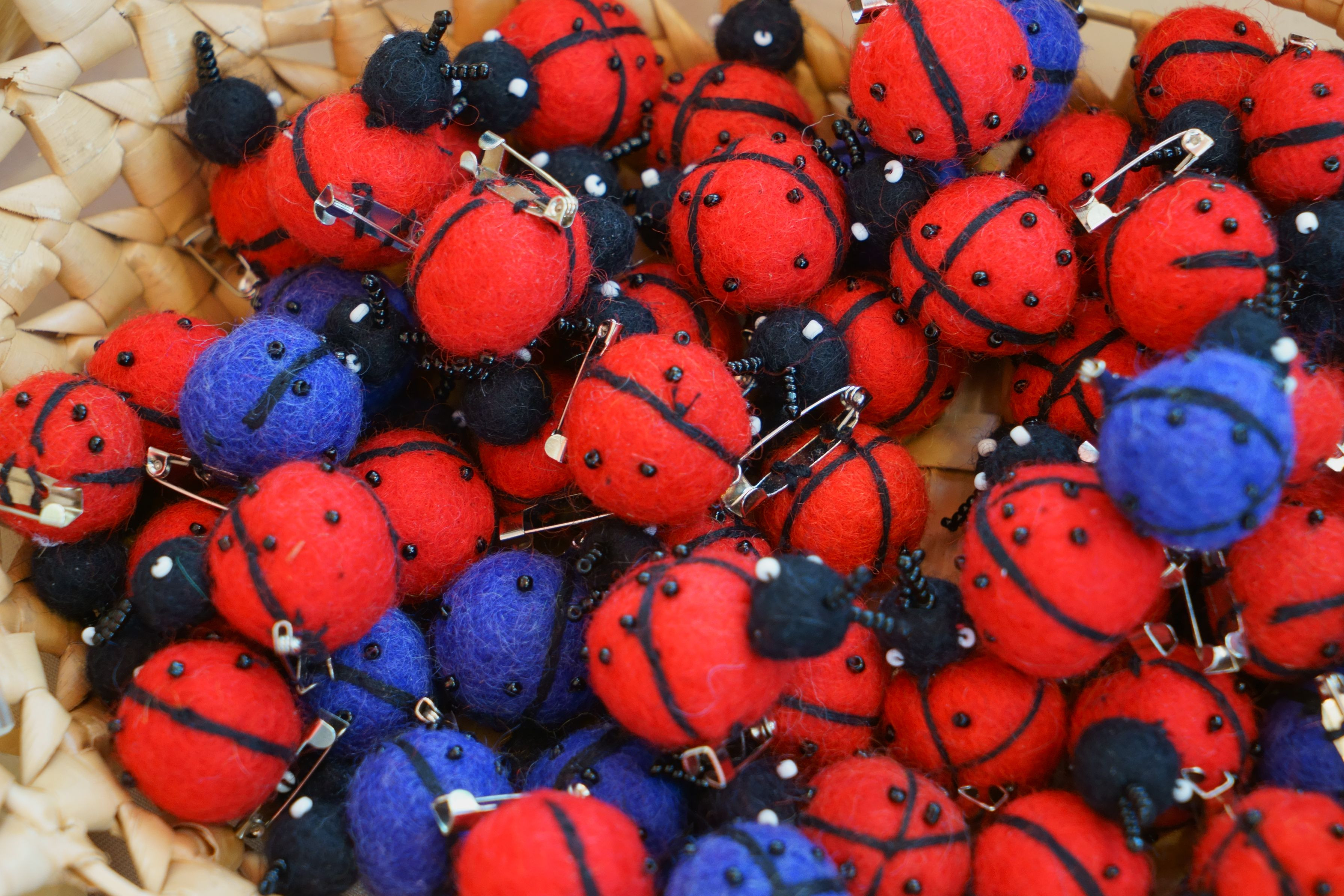 まるで群がっているようなテントウ虫のフエルトブローチ。#新人応援CP2023#