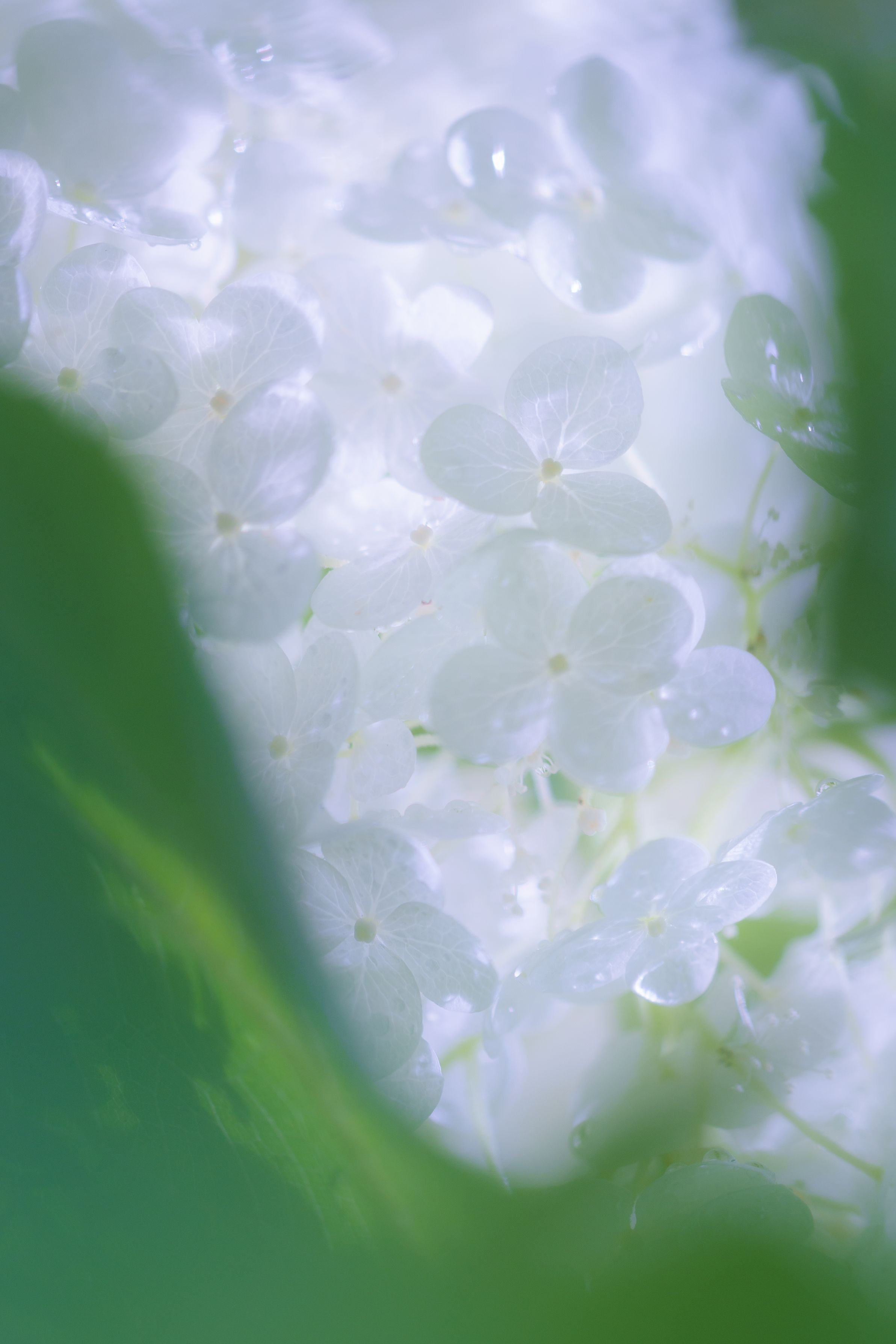 雨上がりの朝、庭のアナベルが可愛い。