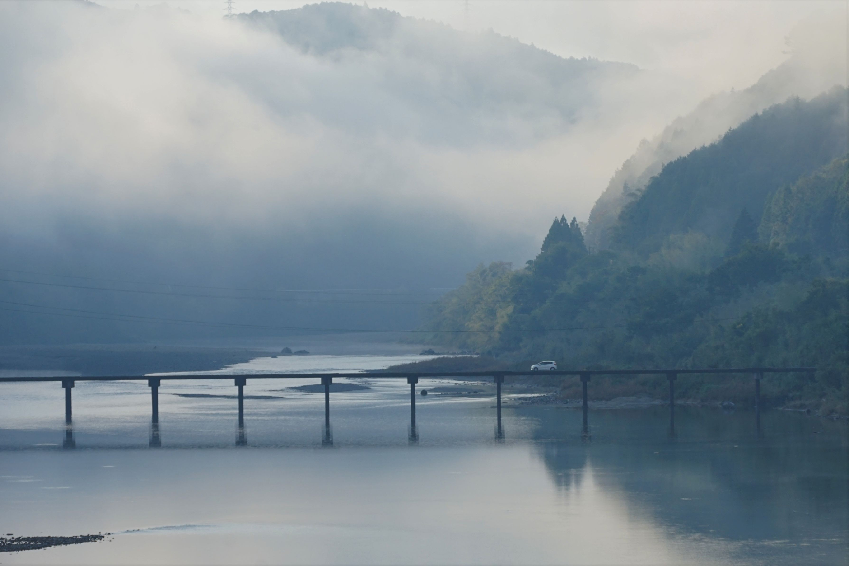 仁淀川中流の沈下橋? 早朝の朝霧の中、撮影しました。 2022.11