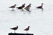 牡蠣棚にとまっていたキアシシギが潮が満ちてきて飛び出して沖合に飛んで行くところまで撮って見ました。