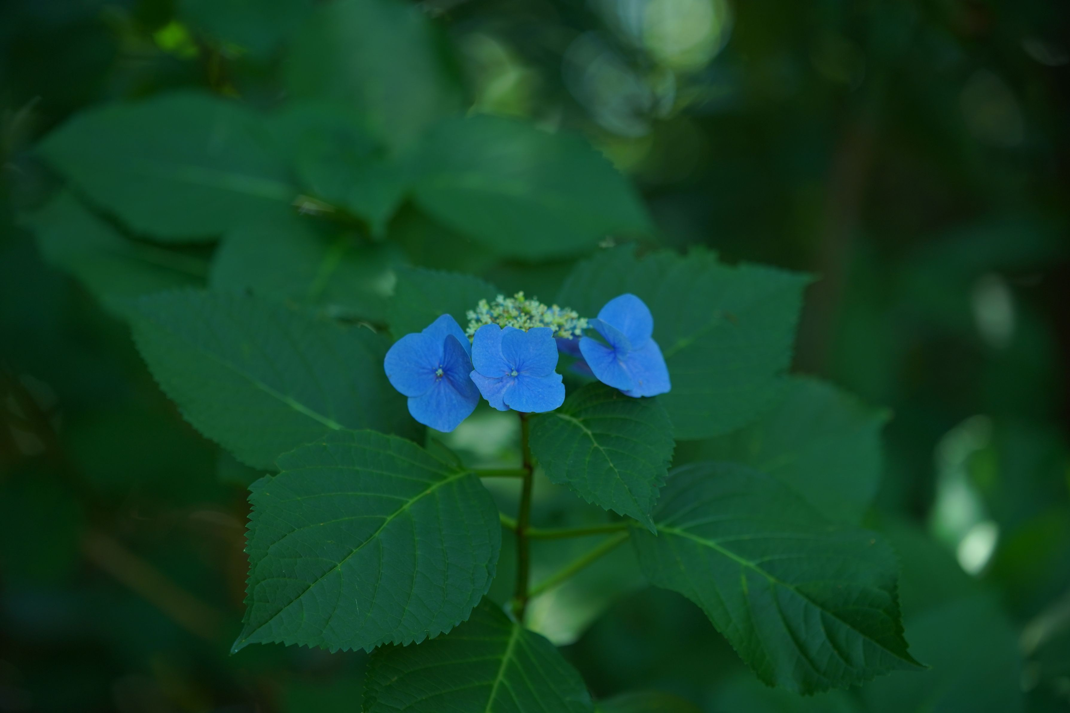 六義園の変哲もない額アジサイなのですが中央上部のボケのつもりが人の顔に見えて仕方なくなりました。