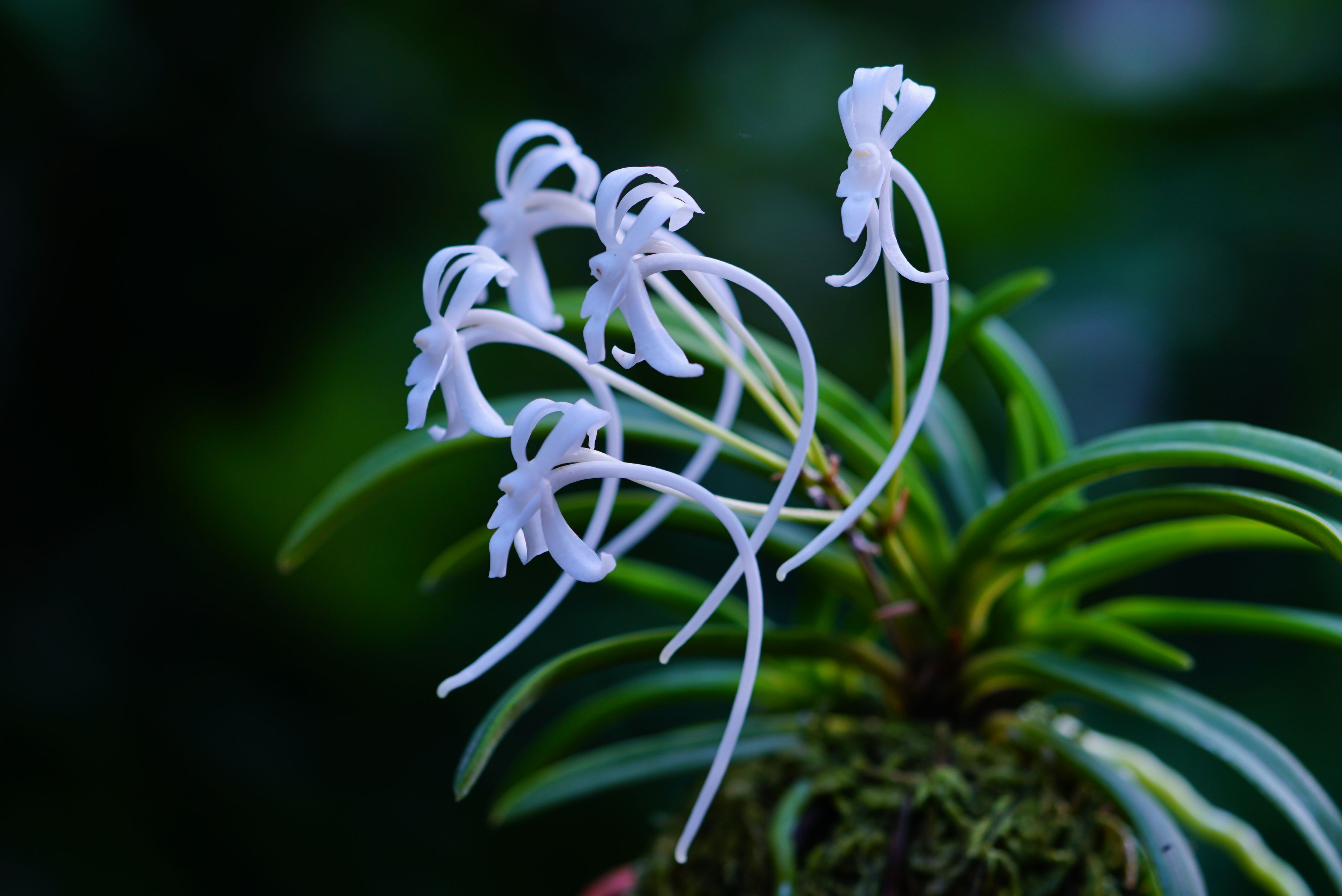 梅雨明けが待たれるこの頃、フウランの甘い香りに癒されるひと時。 フウランは、日本原産のラン科植物の一つで着生植物です。 夜になると香りが増すのは 夜行性の花粉媒介者(スズメガ等..)を 引き付けるためだとか...