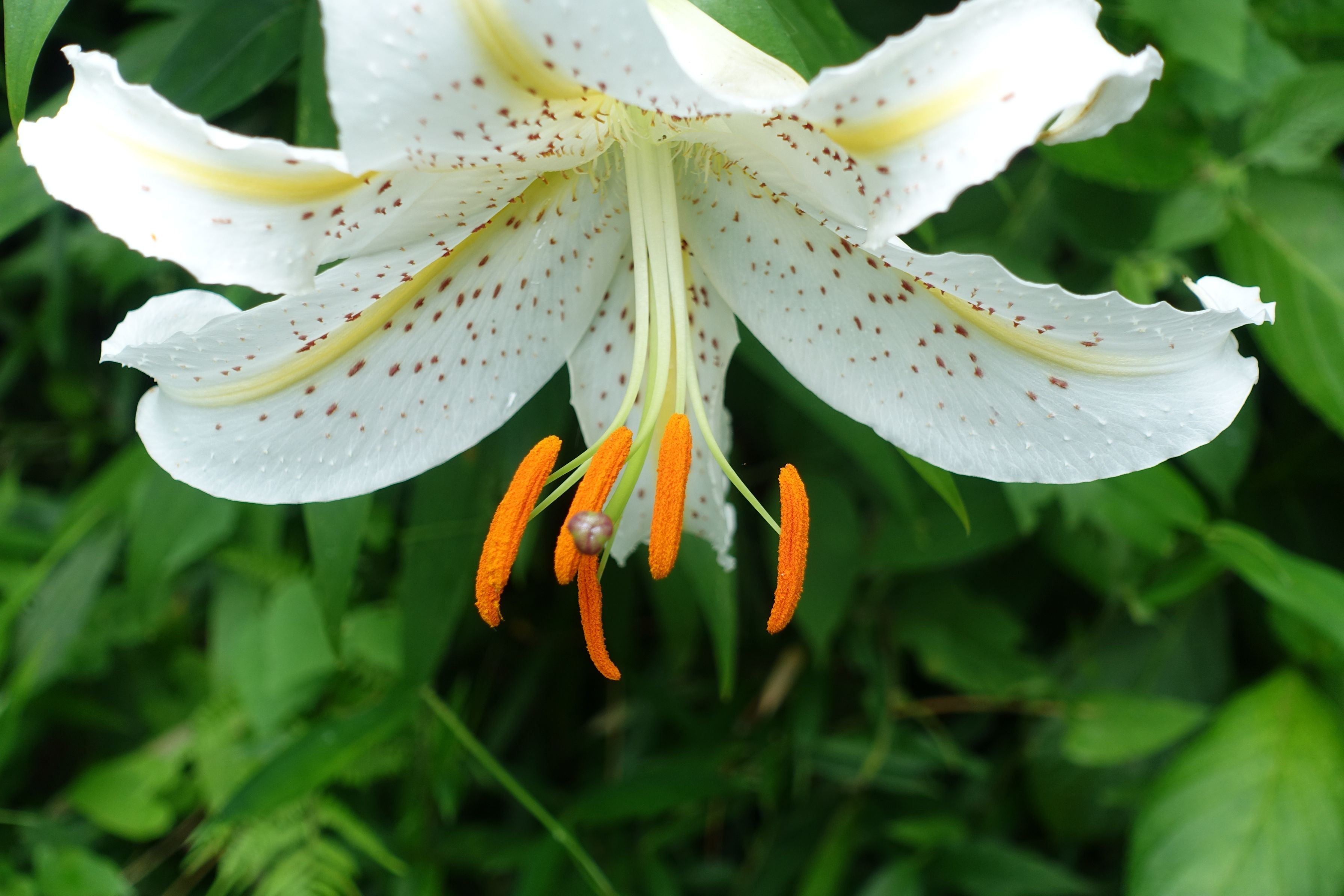 アジサイの中に山ユリが三輪咲いていた一枚です。