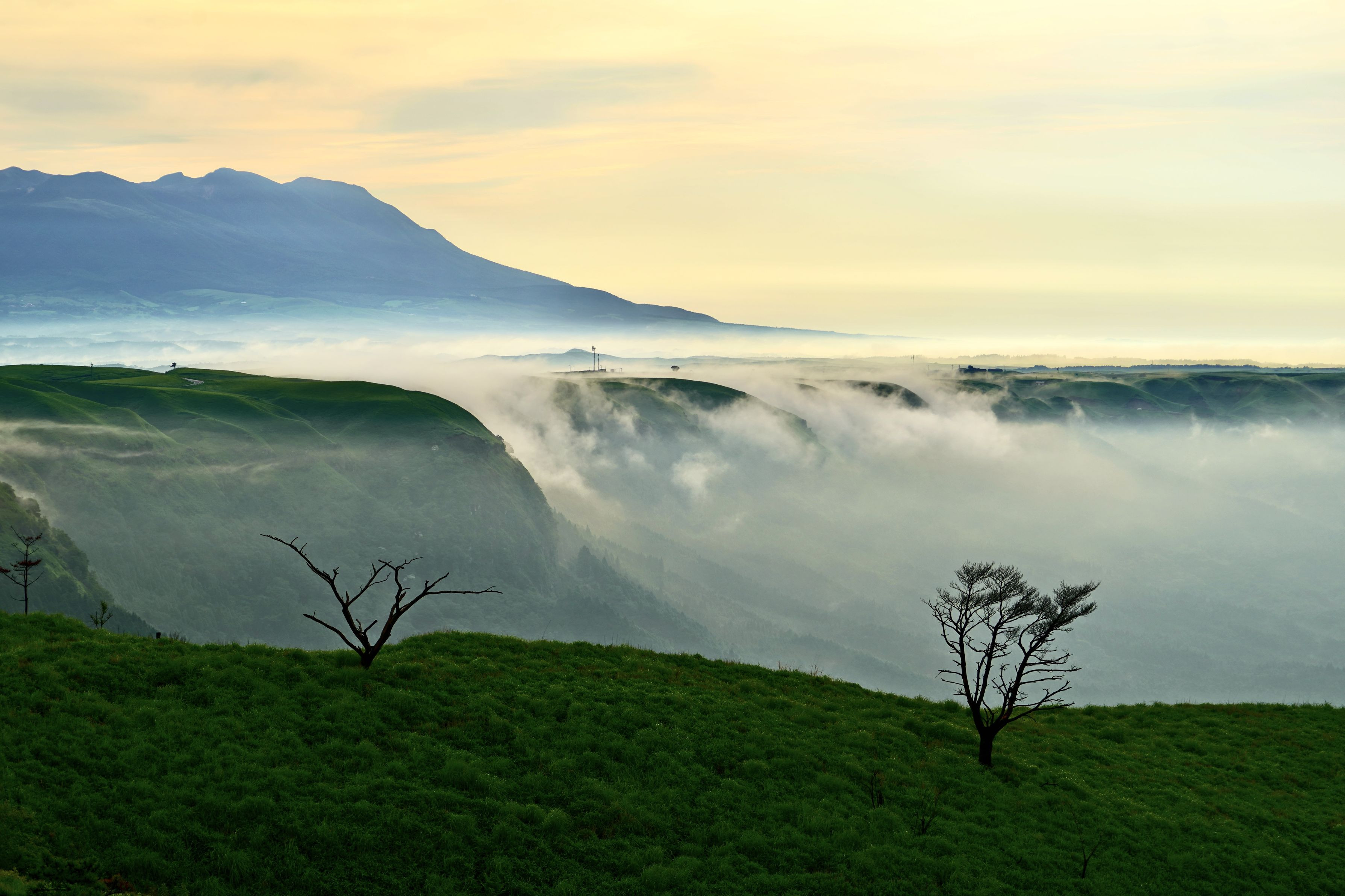 阿蘇北外輪山から南郷谷へ流れ落ちる雲!!初めて見ました。