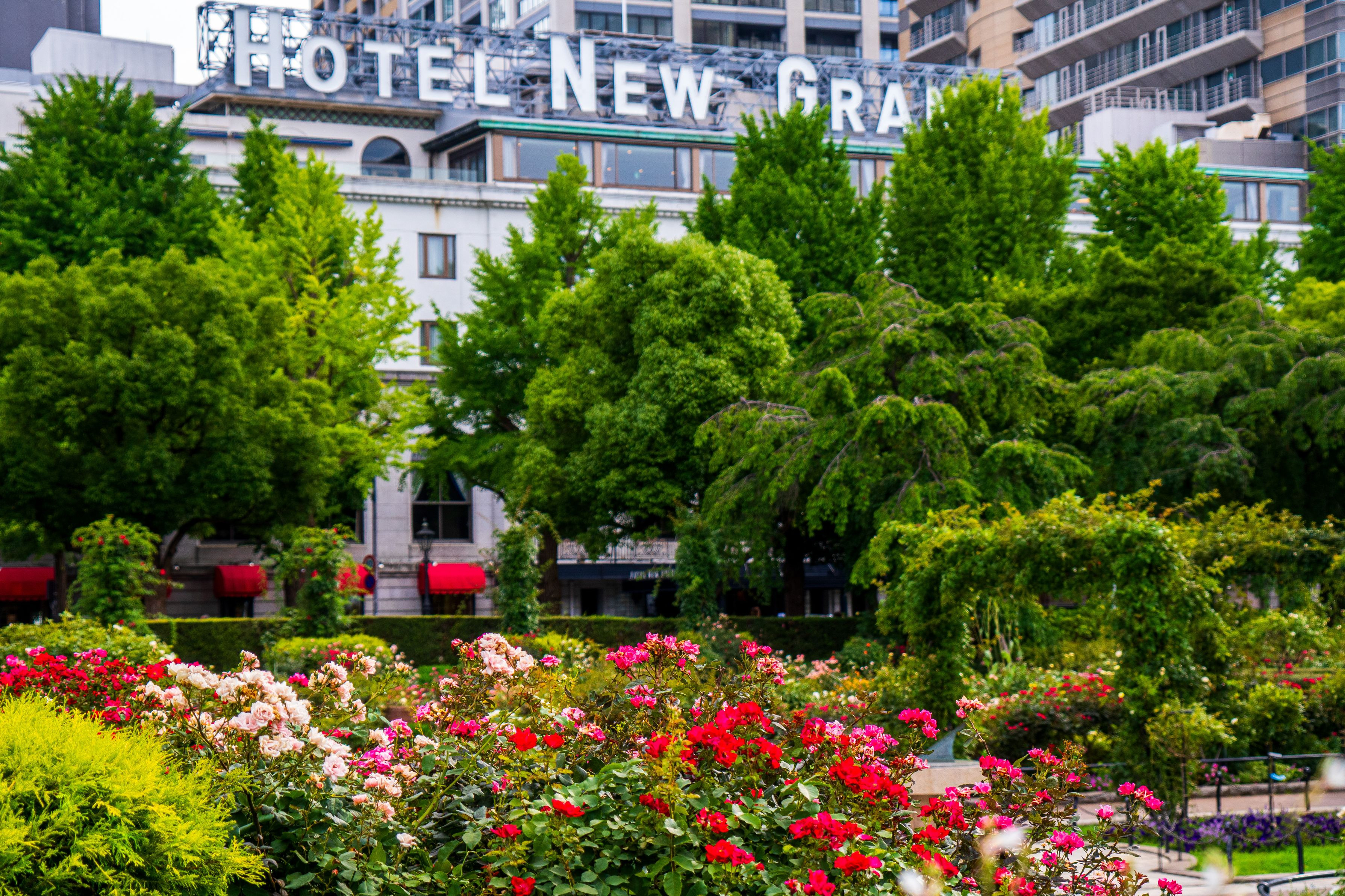 ホテルニューグランドとバラ園。
