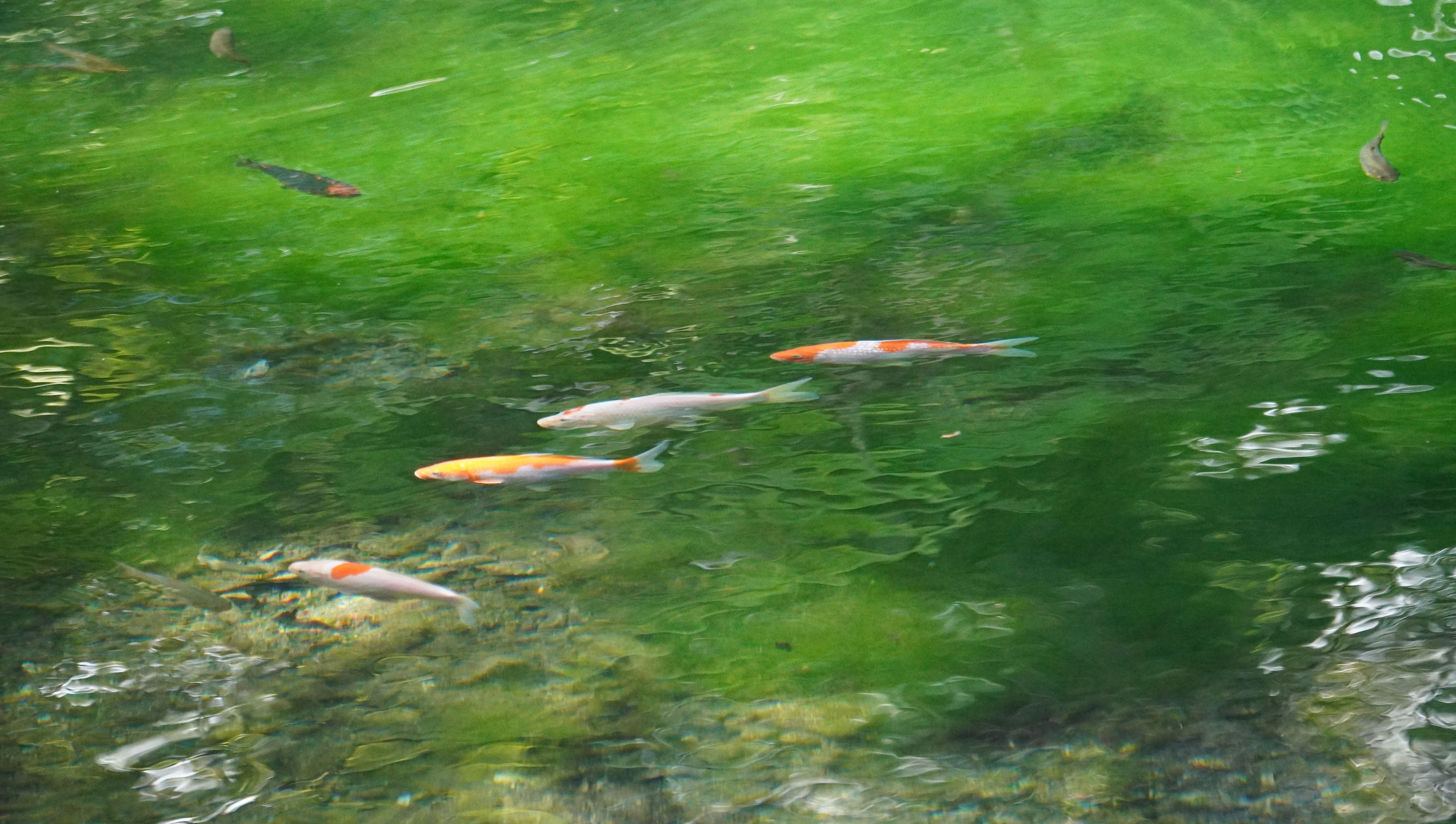 「名水百選」の一つとされる湧水池。その透明度は驚くばかり。 水底の水草が美しく、鯉の群れを引き立てます。 また季節を変えて是非訪れたいと思いました。