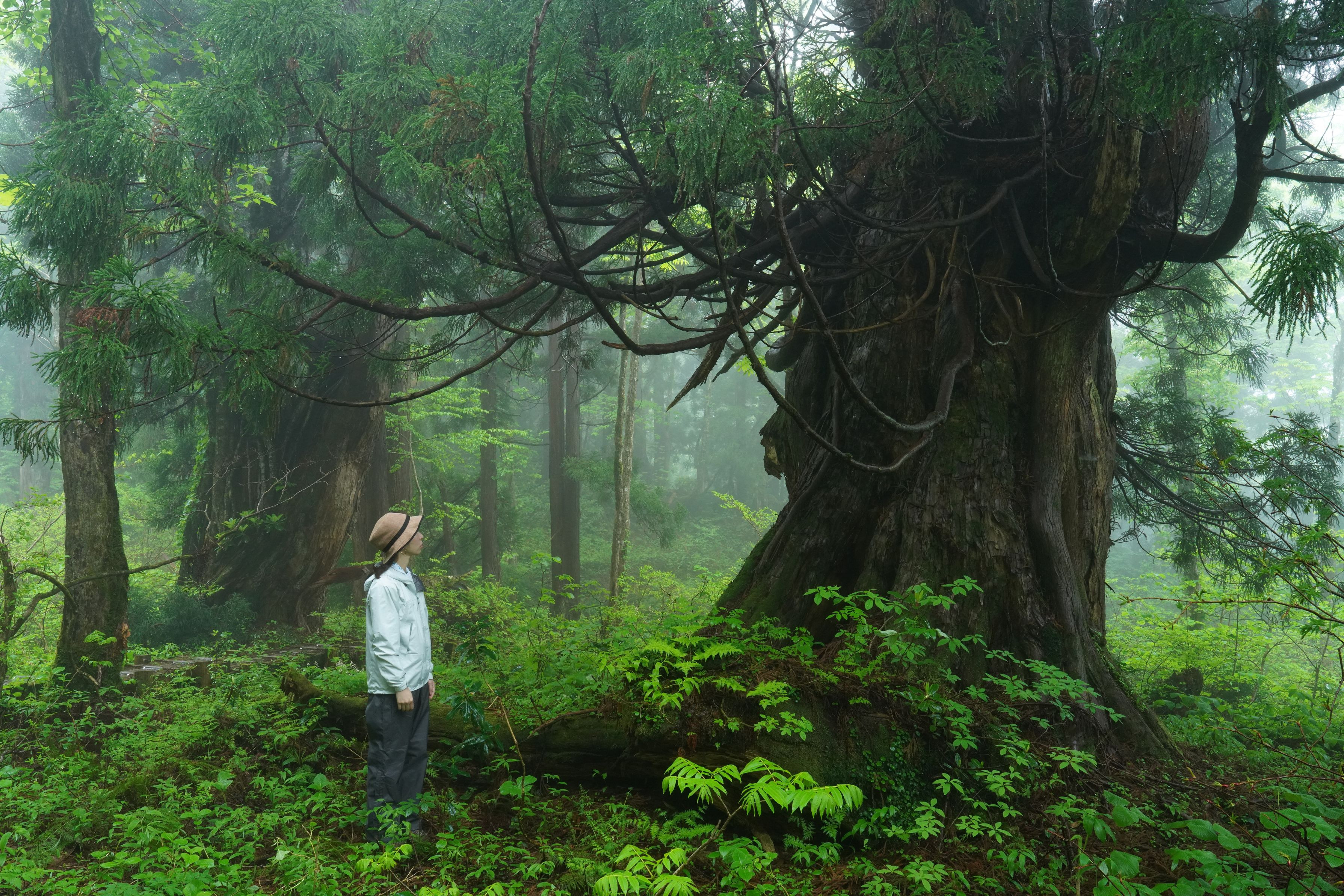 雪に埋まり重みで下がった枝がまた力強く上に伸びようとしている自然の力強さを感じた。