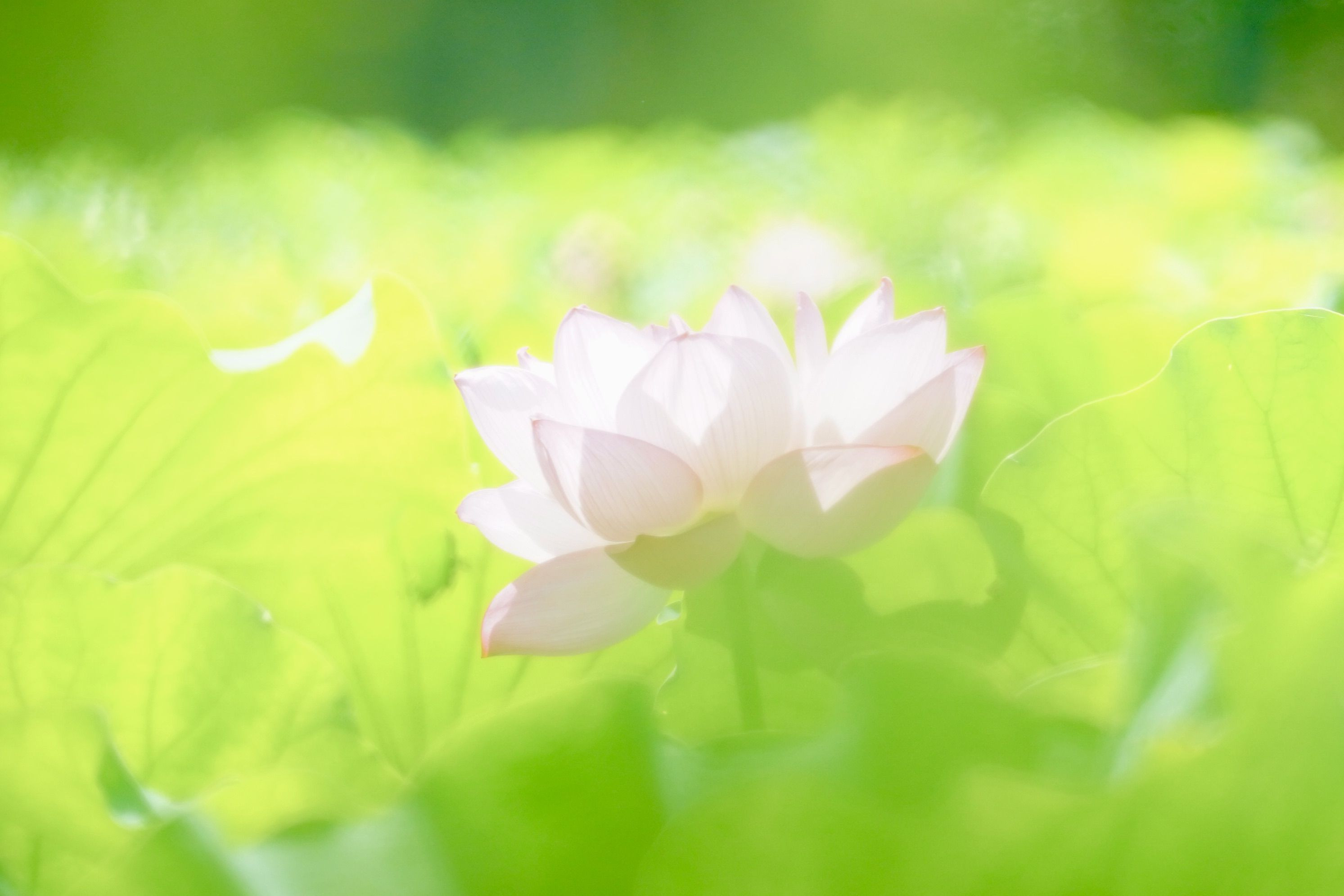 手前の細い葉の植物があり、前ボケにしてみました。 全体的に色合いが淡い感じになりました。