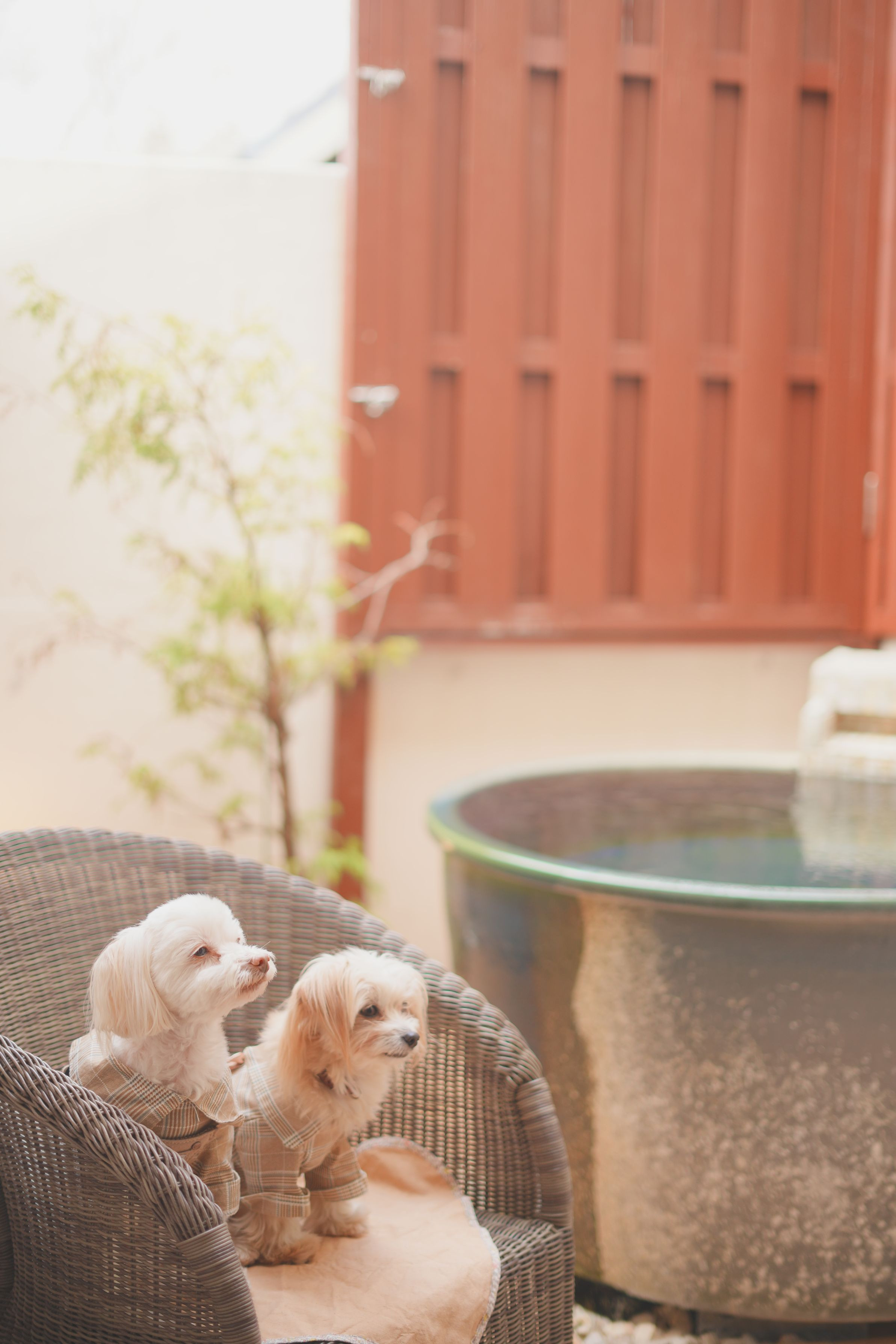 愛犬と旅行した時の写真です。 朝日の優しい光が入って気に入ってます。