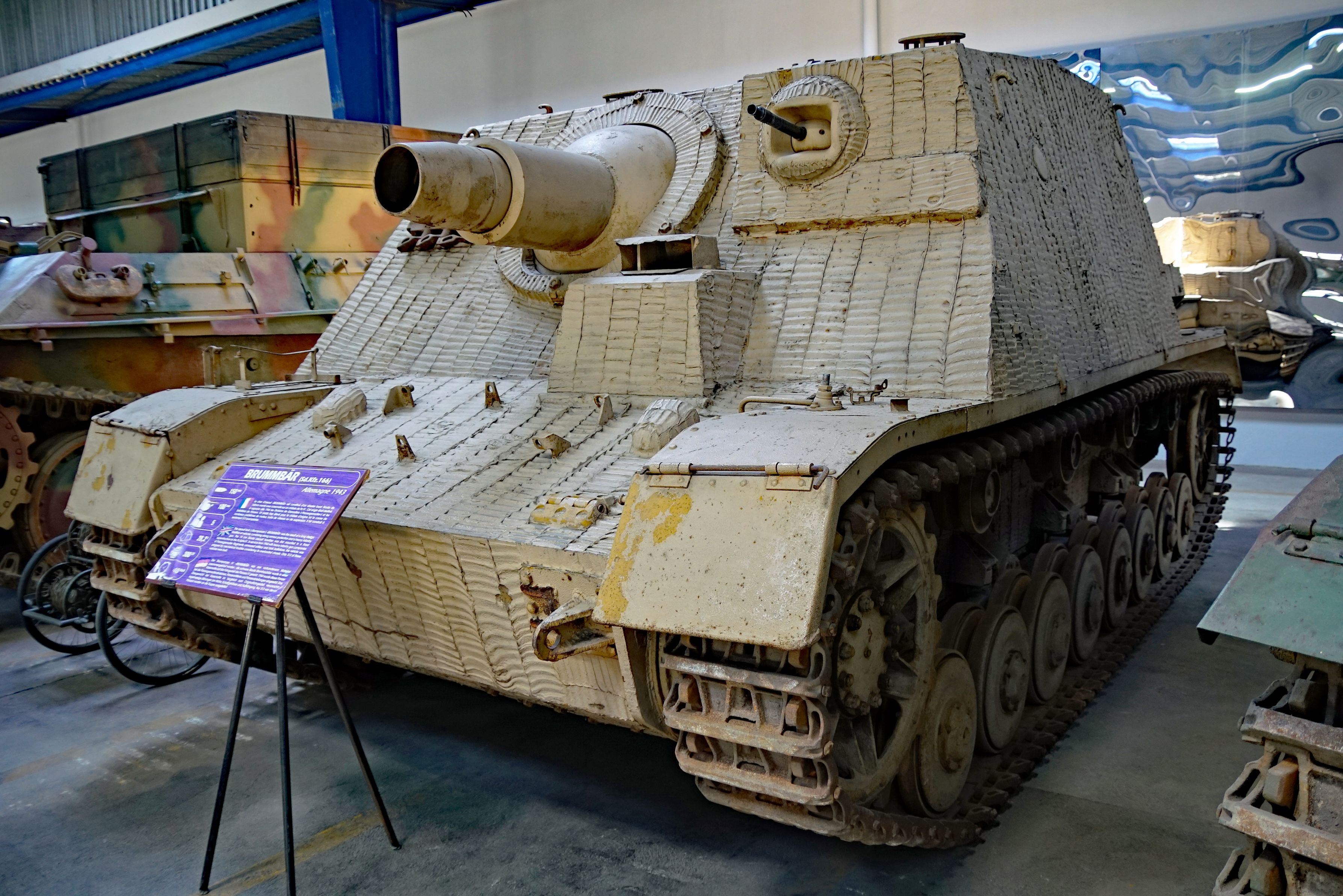 こちらも4号戦車をベースに開発された、市街戦における歩兵の直接支援を目的とした大口径自走歩兵砲です。同館所有の個体は後期型で、これまたツィンメリット・コーティングが美しいですね。