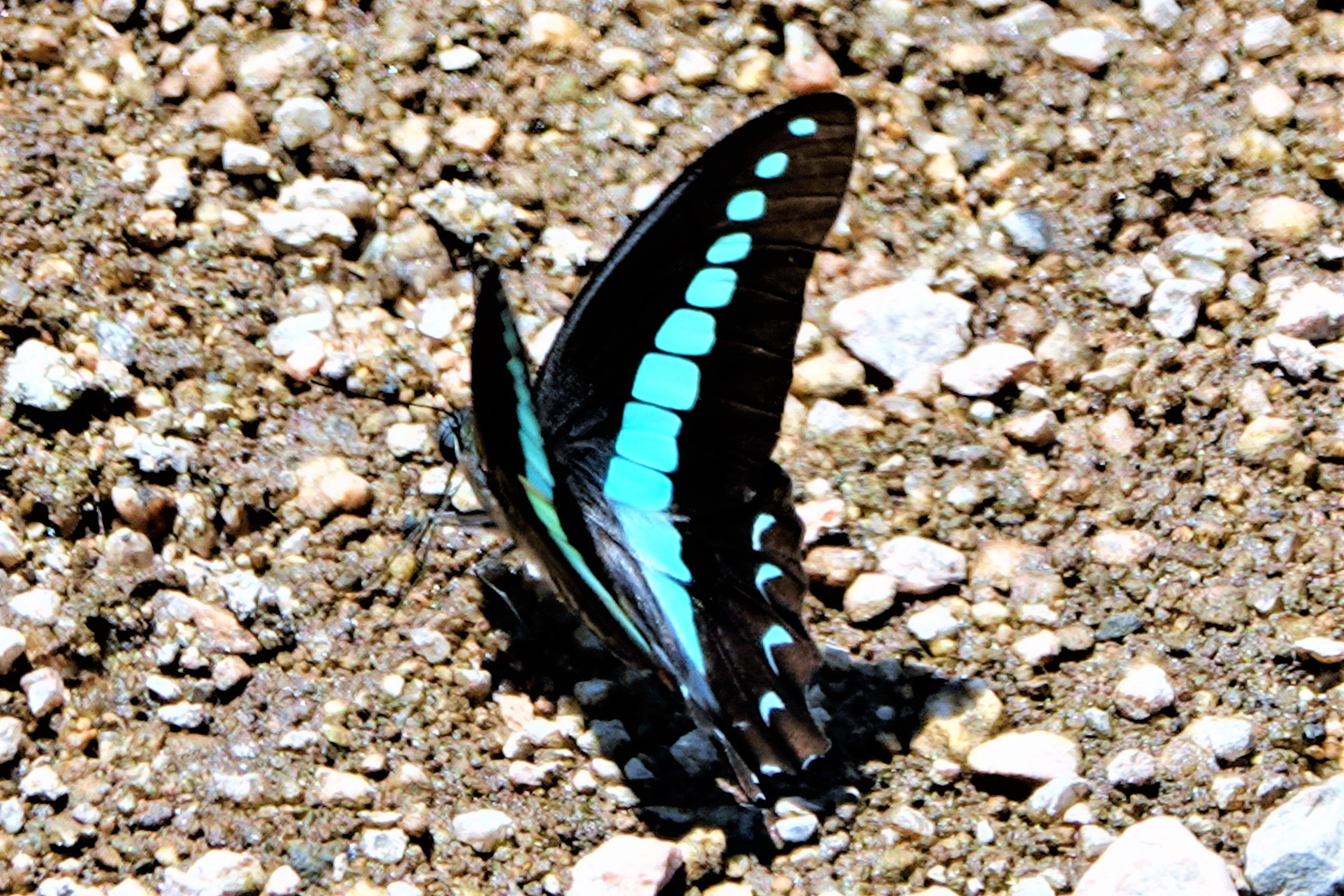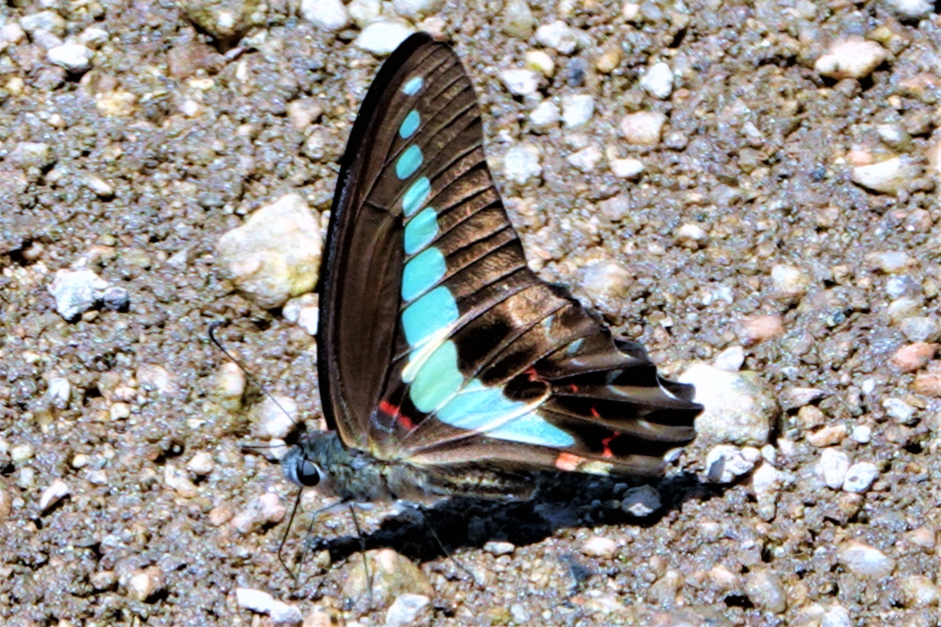 何時もは忙しく飛び回るアオスジアゲハですが河口近くで吸水中で動きがとまったところを撮って見ました。
