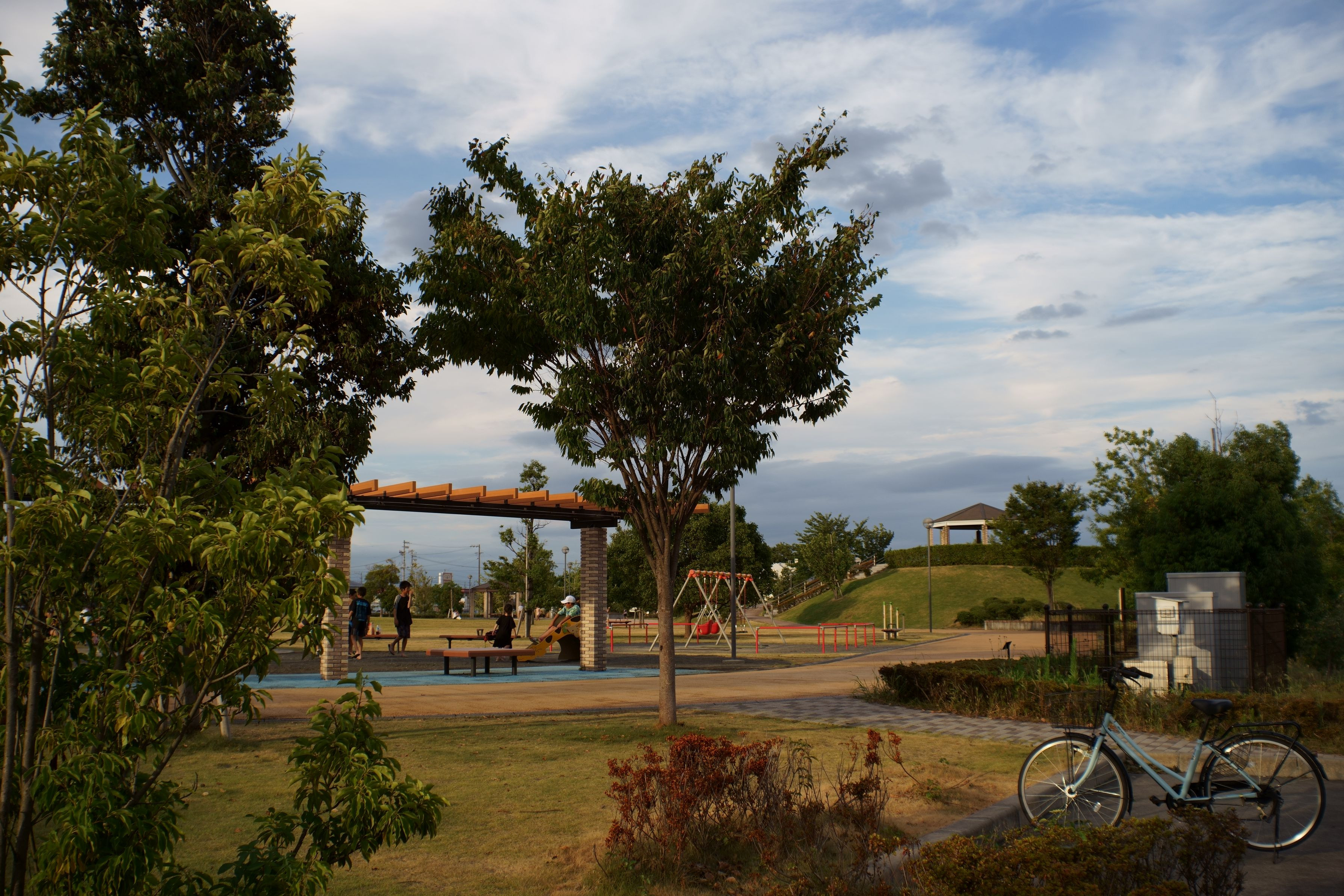 青から黄色に色づいてきた、夕暮れ前の石図西公園(焼津市) α7Ⅱ+Flektogon 35mm F2.8