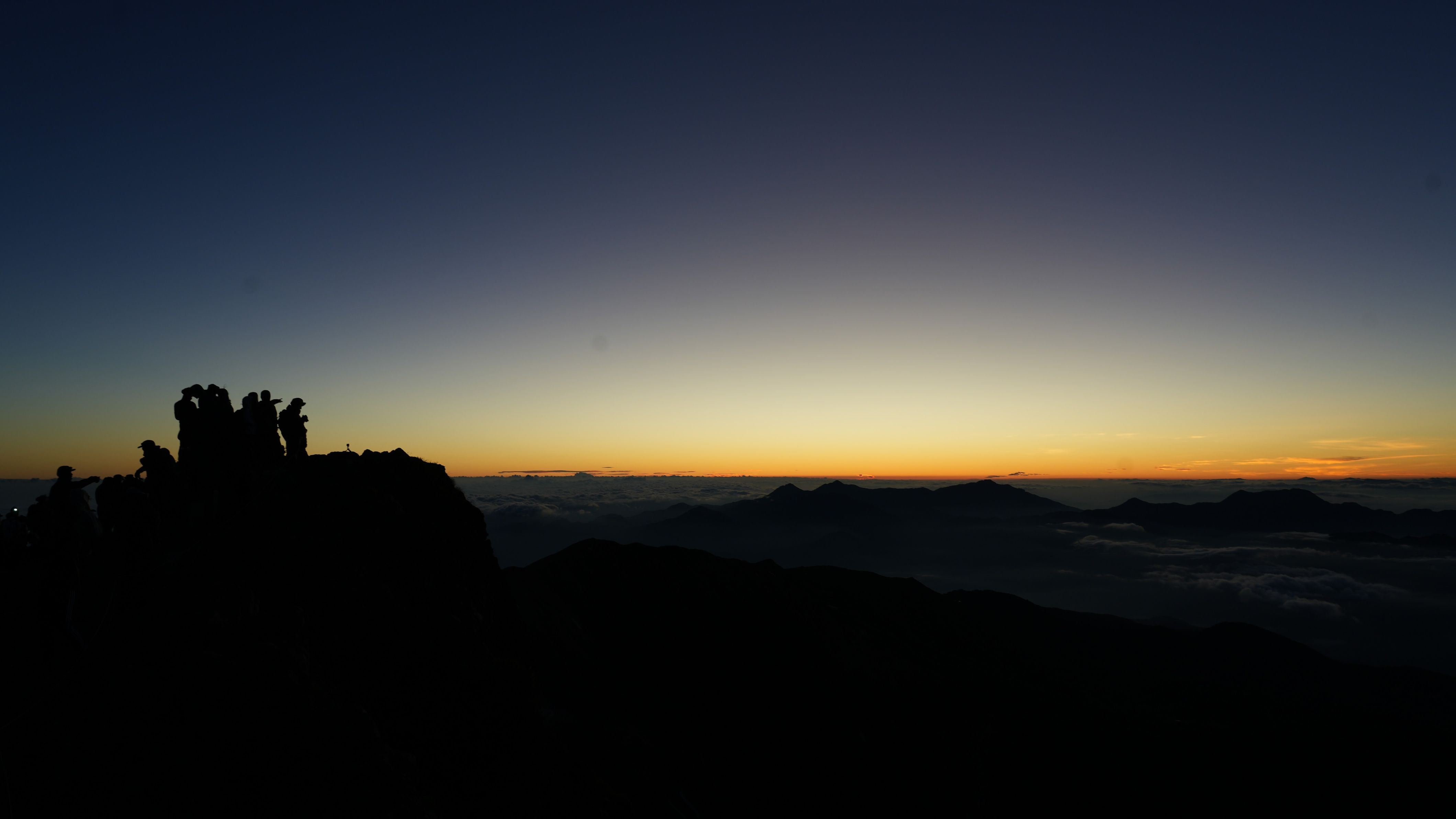 7月中旬の白馬岳山頂で御来光を待つ人達です。
