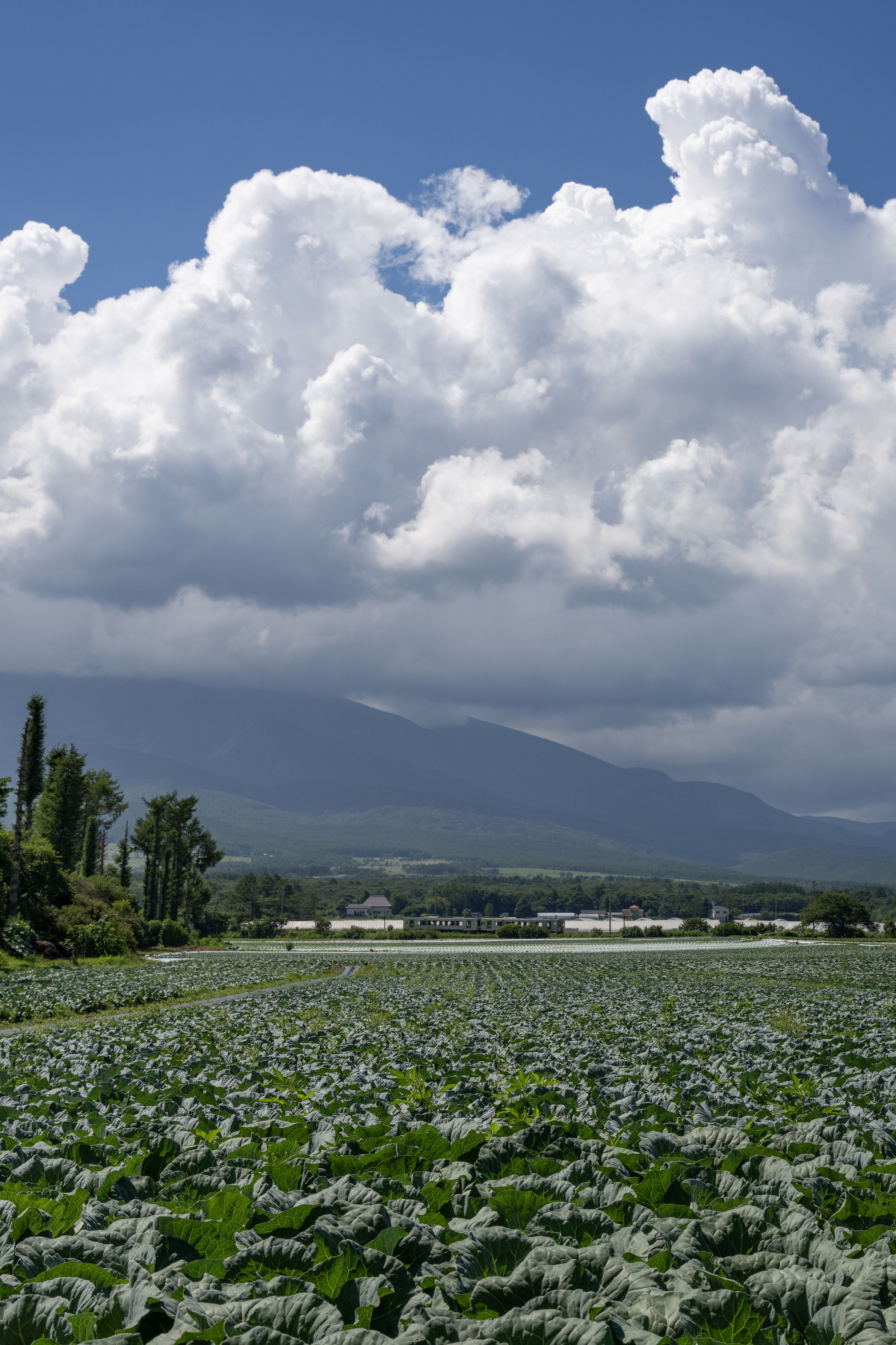 八ヶ岳のキャベツ畑と夏雲の下を行く小海線を捉えてみました。 *本当はもっとアップで取りたかったのですが、雲が意外に低く、それをするとバランスが悪くなるので敢えてこの構図で撮ってみました。