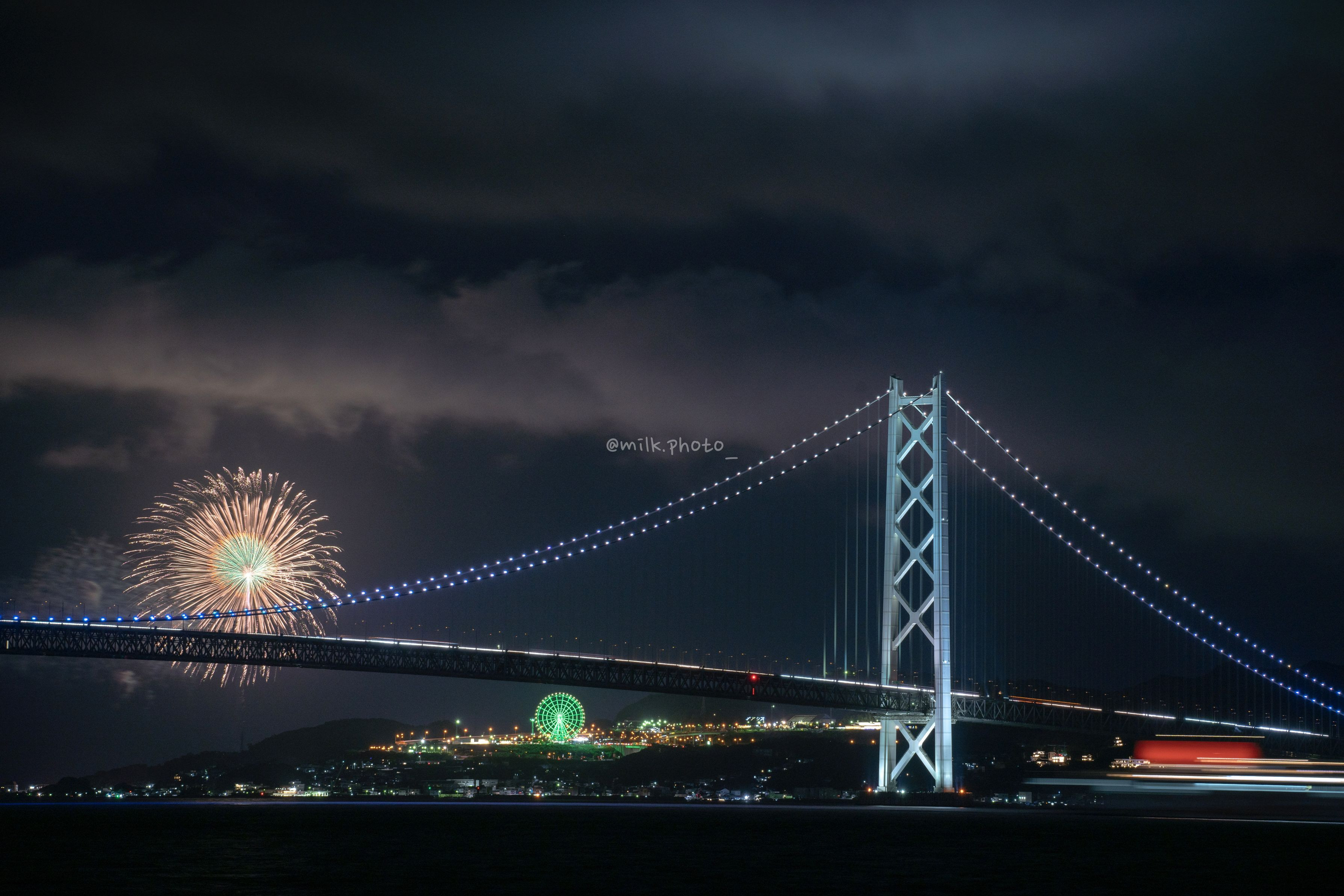 いや〜、いきなりやらかしました。 まさかそんなところに打ち上がるとは…笑 予想してませんでしたね〜。 とりあえず、明石海峡大橋と花火が入ってるからok精神で αcafeに投げてみます笑