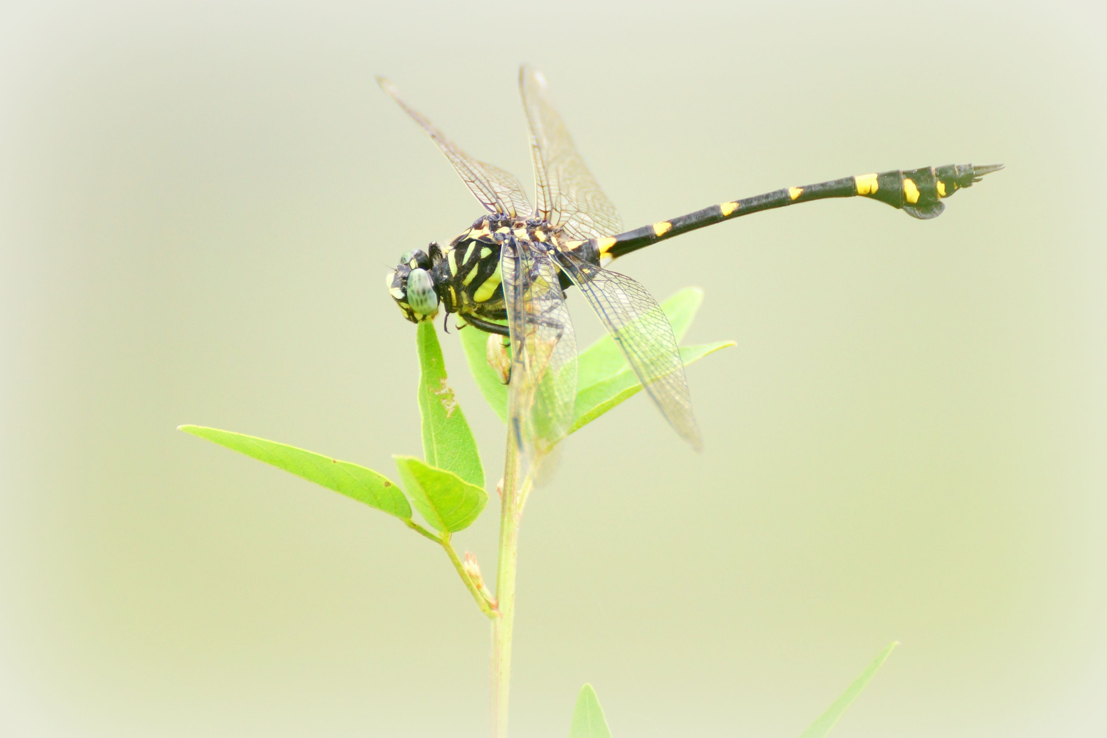 大池のほとりには色々なトンボが生息していますが、中でもひときわ大きい トンボが目に付きます。それがウチワヤンマ、オニヤンマとタメを張れそうな 堂々とした姿は、まさにボス的な存在です。 (タイワンウチワヤンマ/位置調整のため若干トリミングしてます)