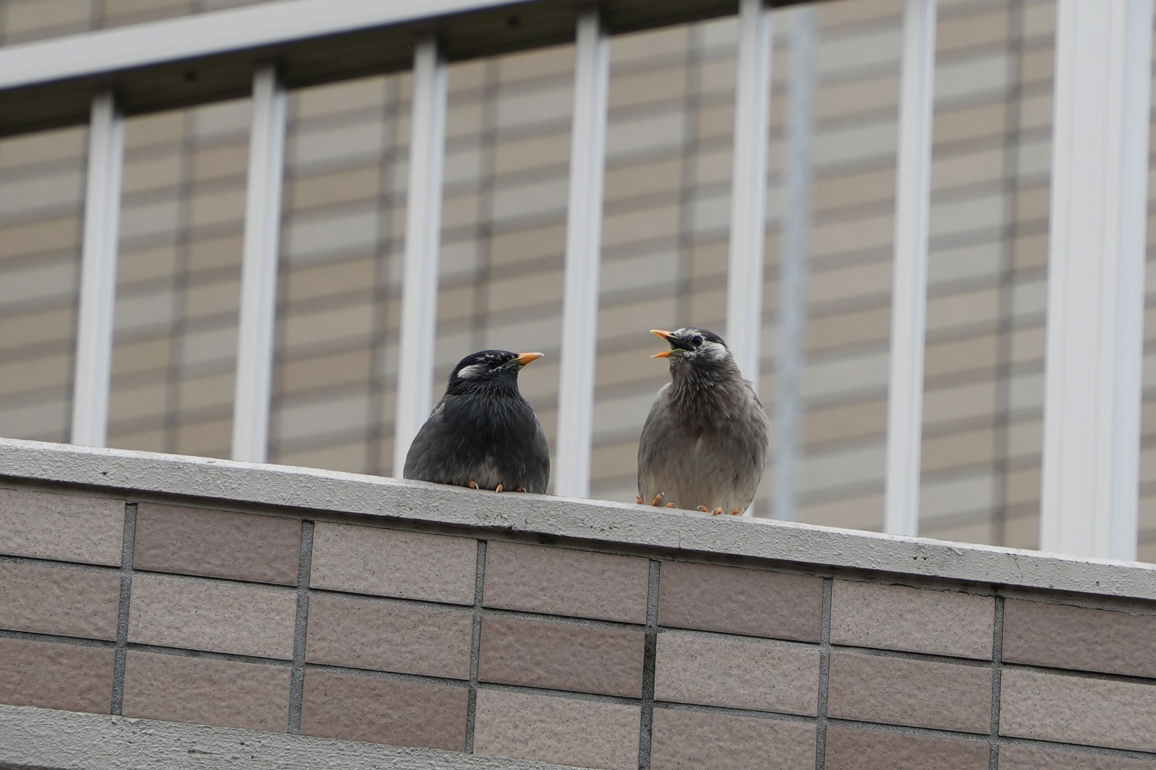 まだひな鳥かな?仲良くおしゃべり中です。 #ムクドリ#