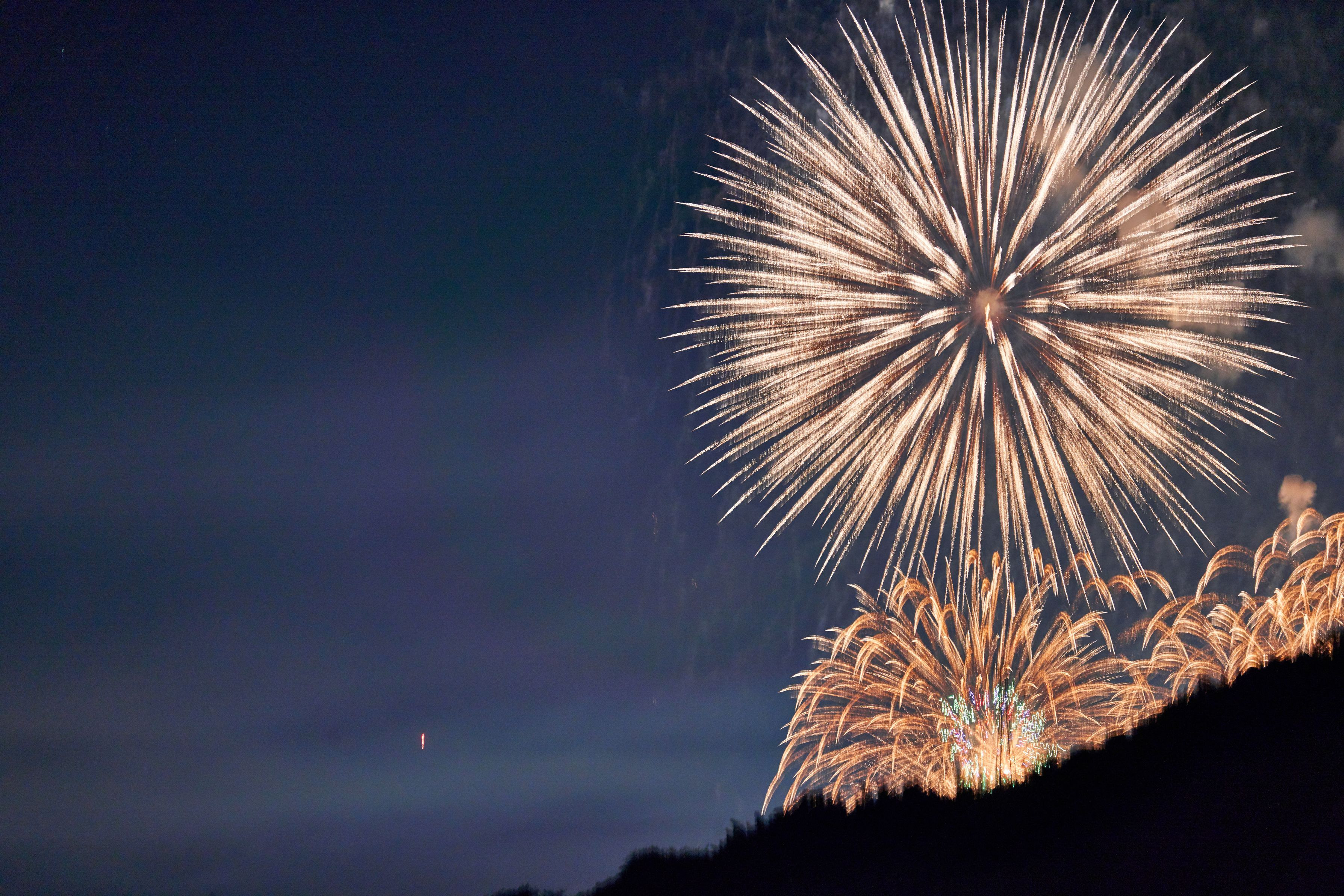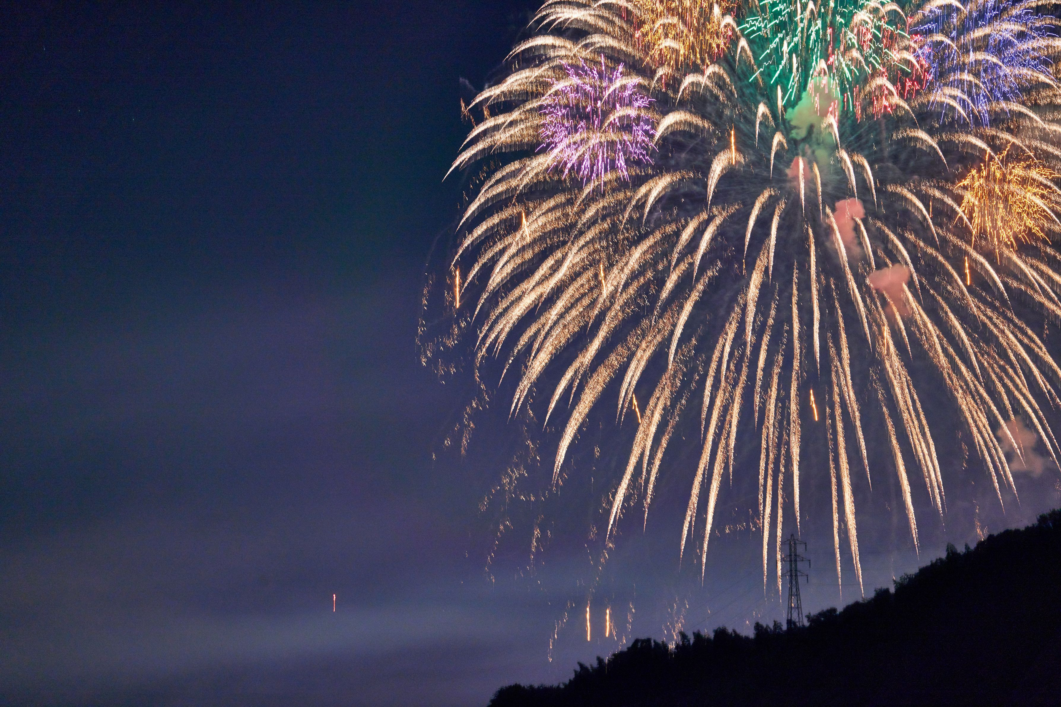 山の向こうの花火大会を観賞。 昨年もブレてたのに、今回も三脚無手押しシャッターでボツ写真ばかりでした。 ・・今度こそは買った時に一度だけ使った、リモートスイッチを使おう・・ ^^;