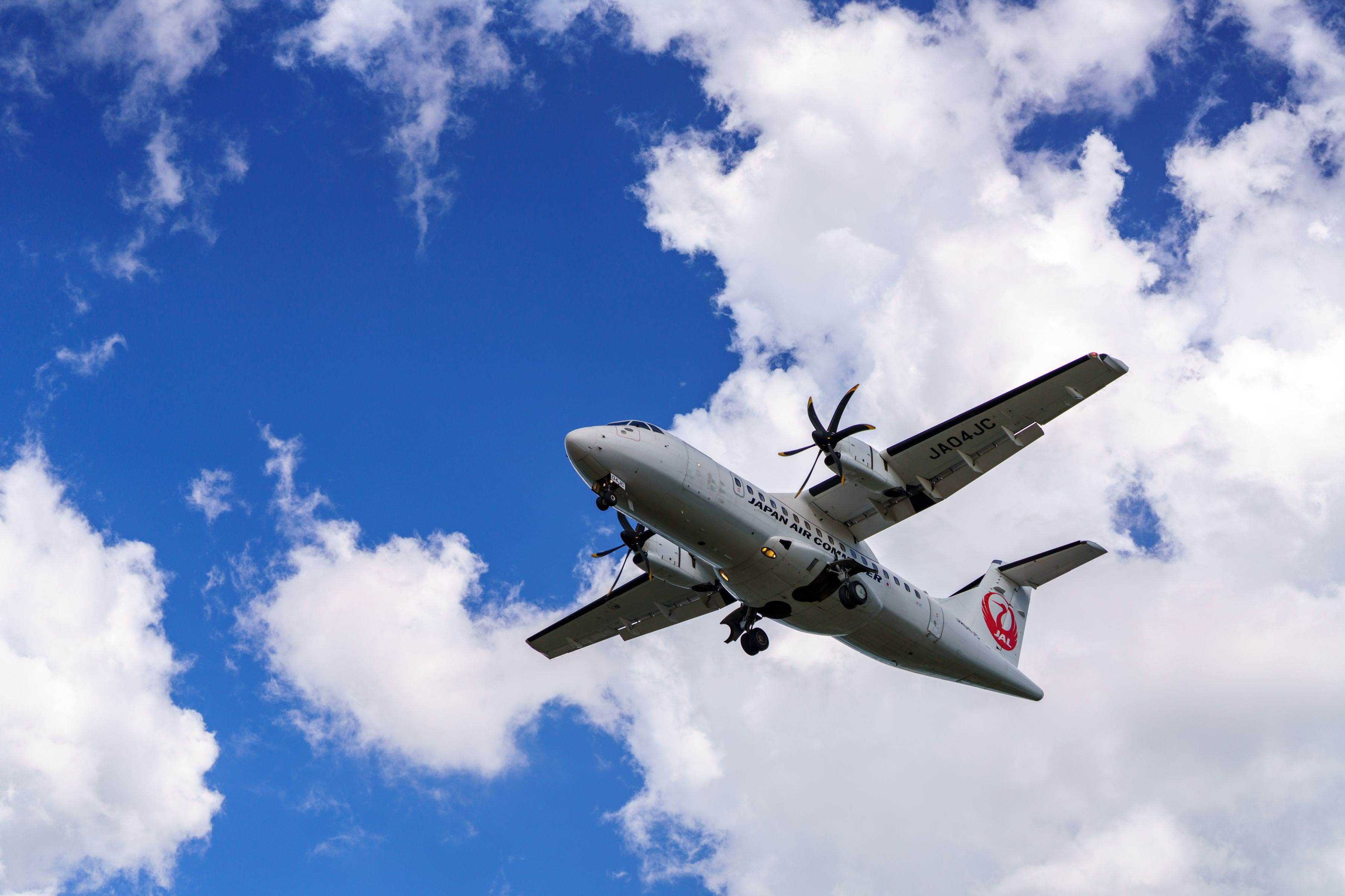 めちゃくちゃ暑い今年の夏ですが、夏空の青、雲の白を背景にJAL(JAC)がゆっくりと降りてくるのはなんだか涼しげ。。