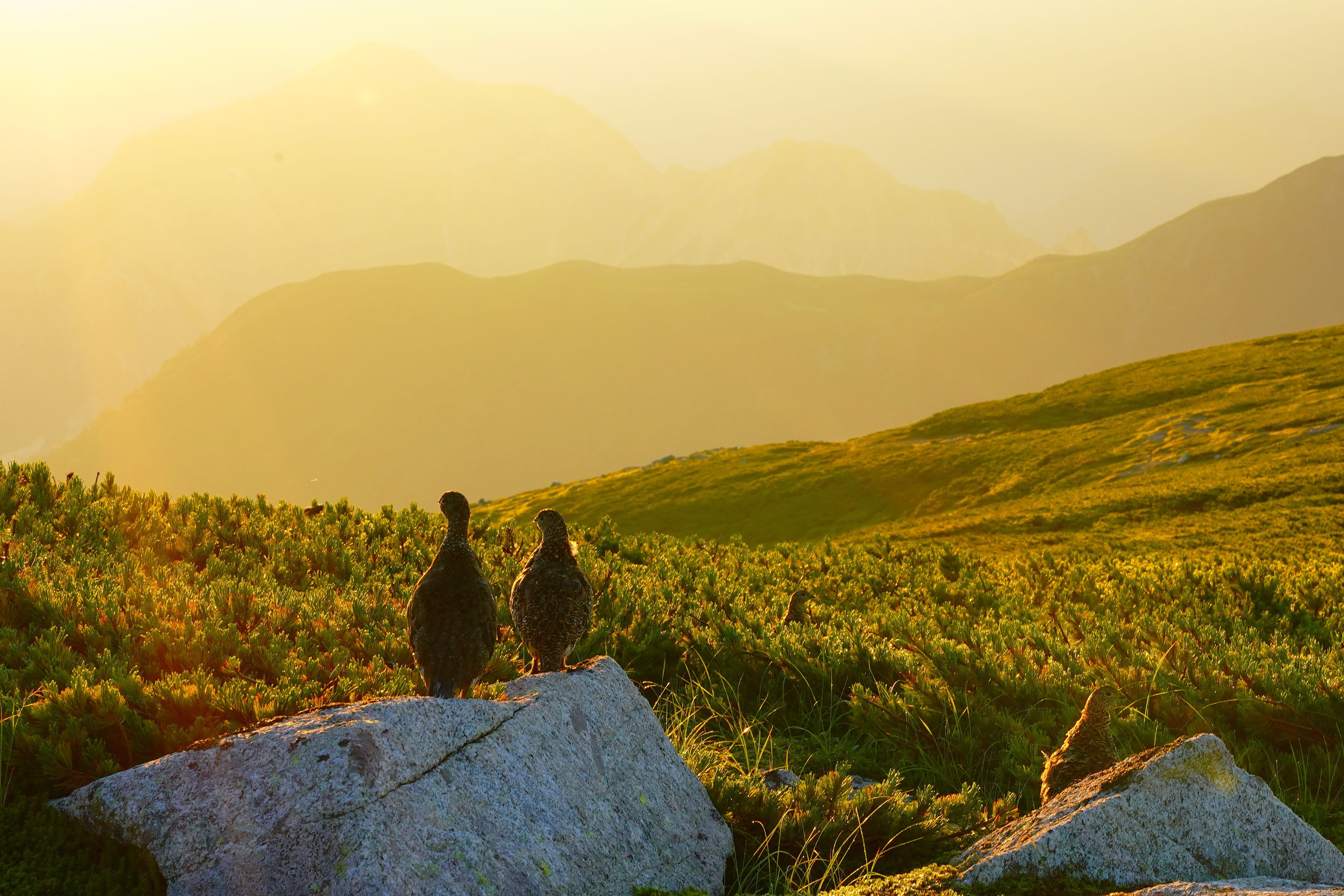 双六岳で朝焼けに佇む雷鳥を撮影しました。