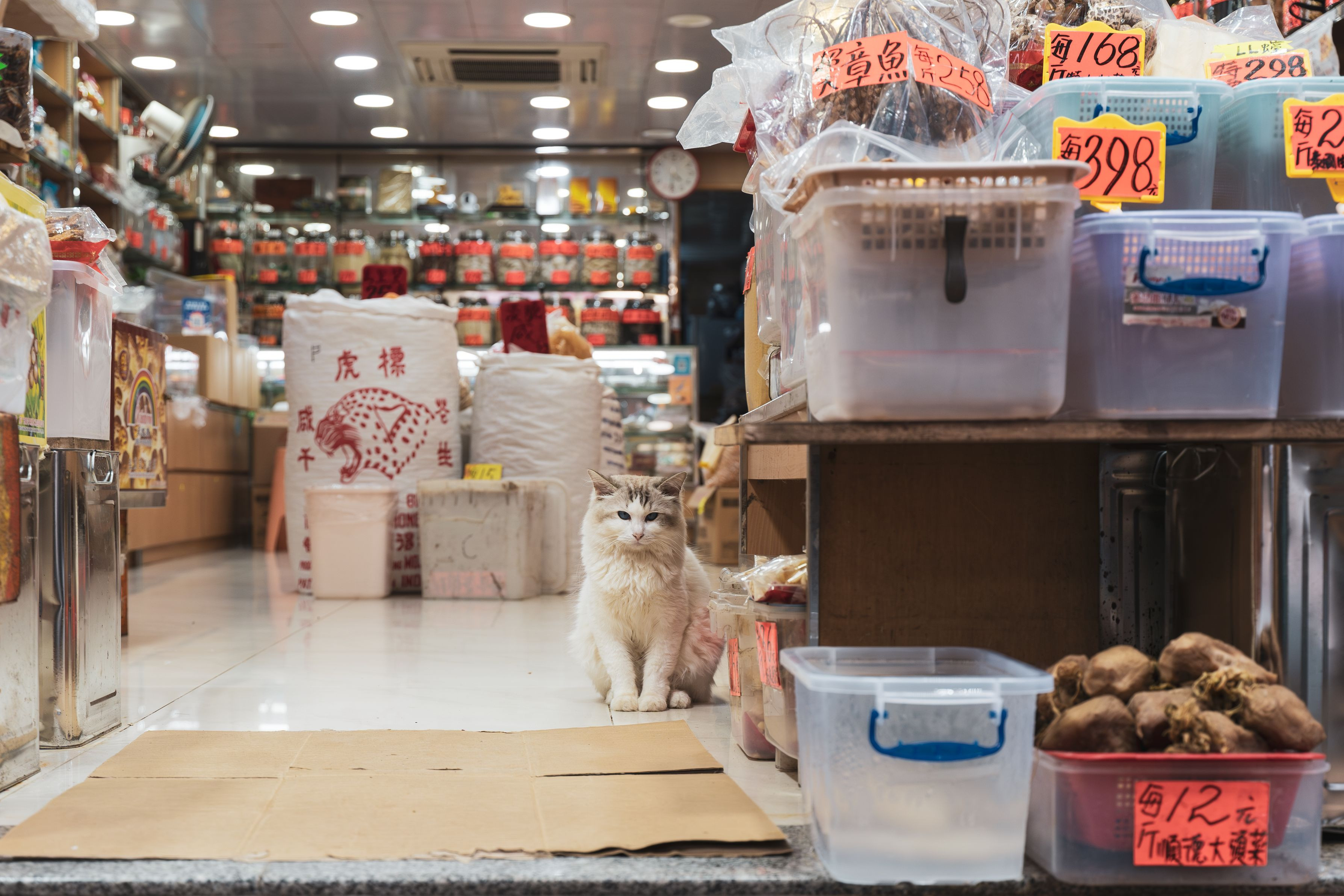 香港の乾物屋さんは猫を飼っている所が多いので散策しながら猫探し^^ お店のネズミを駆除してもらうために飼っているのが多いそうです。