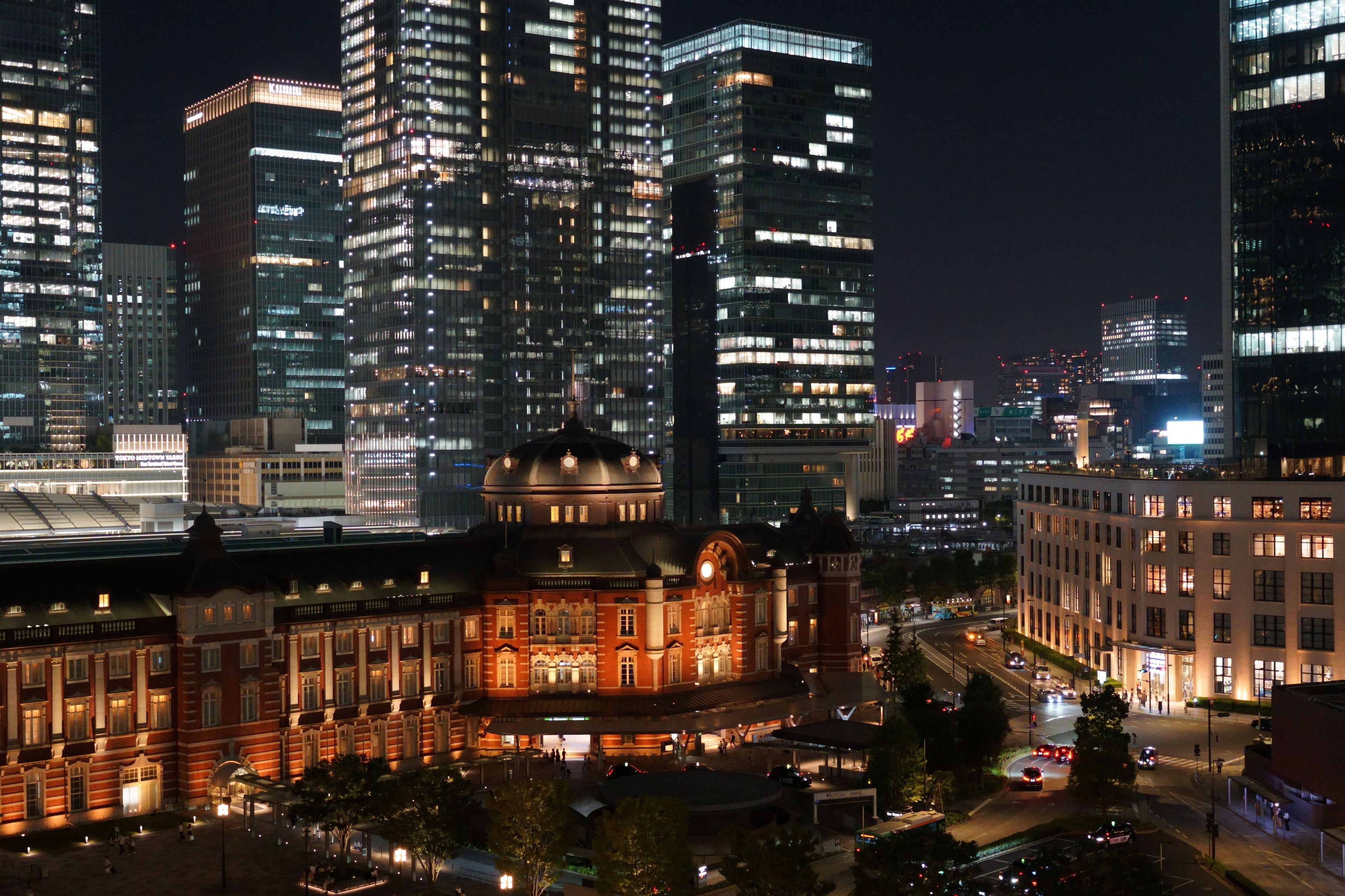 丸の内南口周辺です。 夜になっても蒸し暑く、海外からの観光客も多いです。